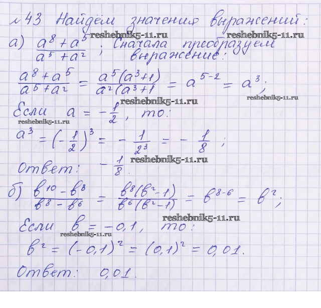 Готовая домашняя работа с ответами по Алгебре за 8 класс Макарычев, Миндюк, Нешков, Суворова Учебник Просвещение 2016 ФГОС - Упражнения 43