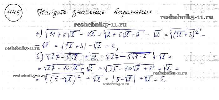 Готовая домашняя работа с ответами по Алгебре за 8 класс Макарычев, Миндюк, Нешков, Суворова Учебник Просвещение 2016 ФГОС - Упражнения 445