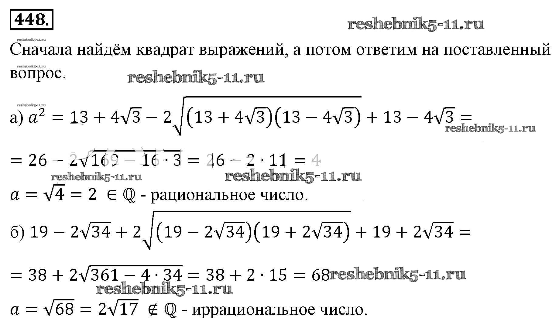 Готовая домашняя работа с ответами по Алгебре за 8 класс Макарычев, Миндюк, Нешков, Суворова Учебник Просвещение 2016 ФГОС - Упражнения 448