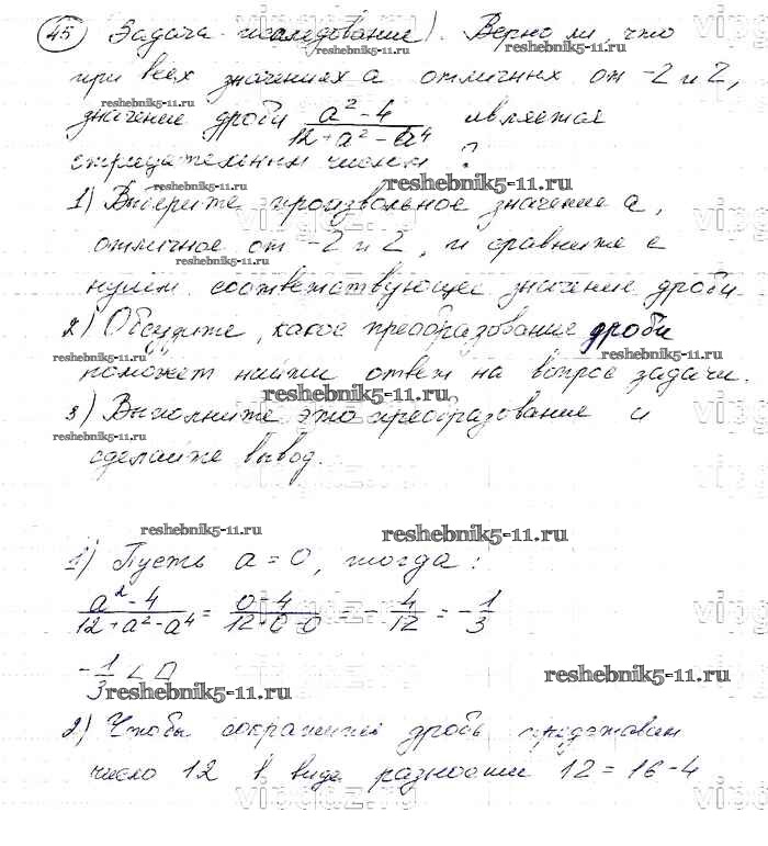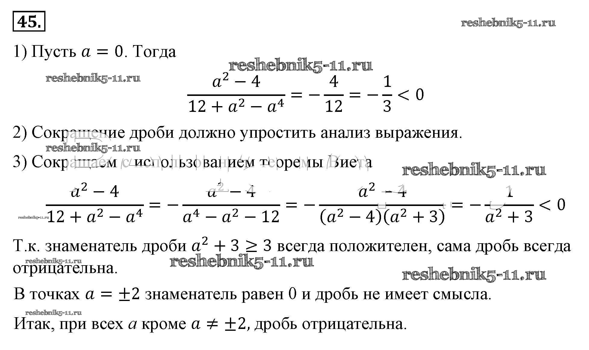 Готовая домашняя работа с ответами по Алгебре за 8 класс Макарычев, Миндюк, Нешков, Суворова Учебник Просвещение 2016 ФГОС - Упражнения 45