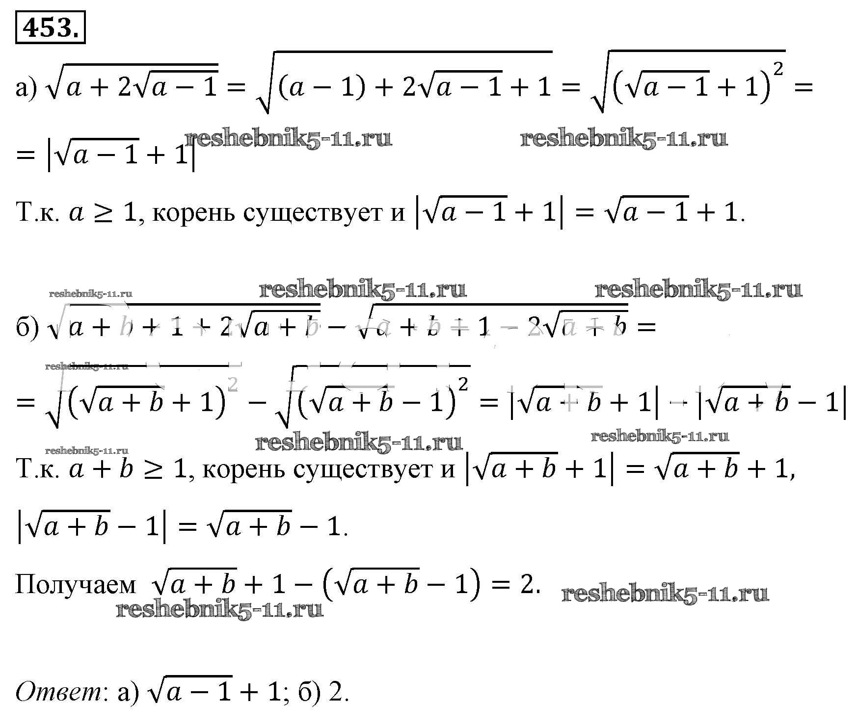 Готовая домашняя работа с ответами по Алгебре за 8 класс Макарычев, Миндюк, Нешков, Суворова Учебник Просвещение 2016 ФГОС - Упражнения 453