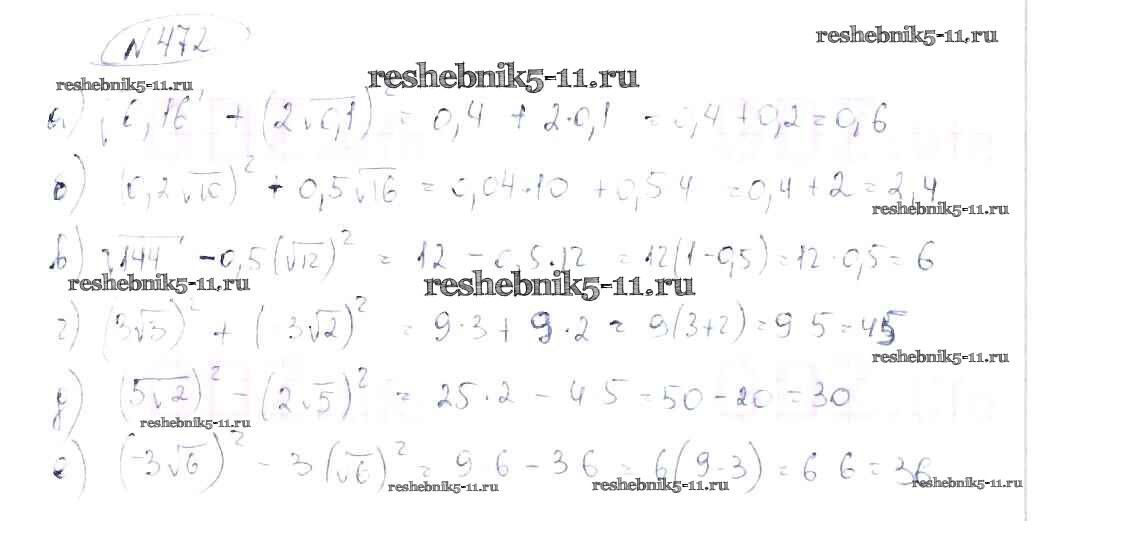 Готовая домашняя работа с ответами по Алгебре за 8 класс Макарычев, Миндюк, Нешков, Суворова Учебник Просвещение 2016 ФГОС - Упражнения 472