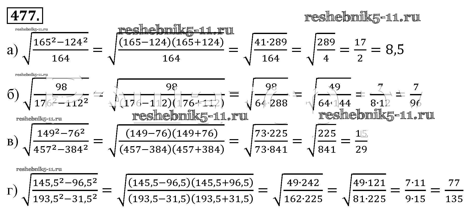 Готовая домашняя работа с ответами по Алгебре за 8 класс Макарычев, Миндюк, Нешков, Суворова Учебник Просвещение 2016 ФГОС - Упражнения 477
