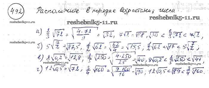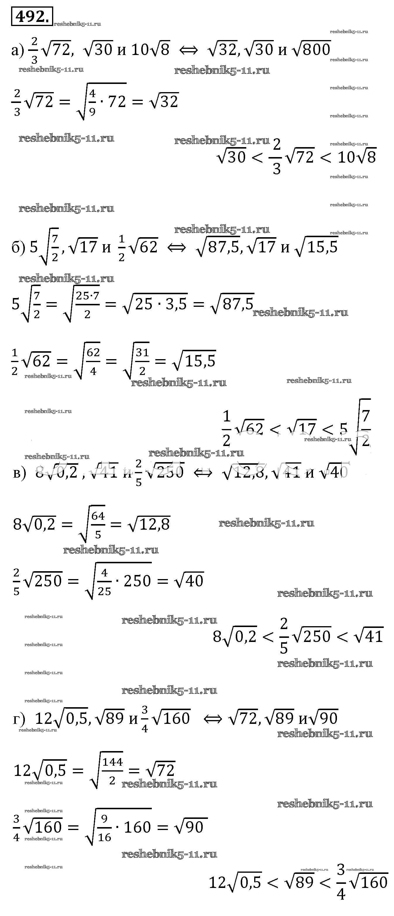 Готовая домашняя работа с ответами по Алгебре за 8 класс Макарычев, Миндюк, Нешков, Суворова Учебник Просвещение 2016 ФГОС - Упражнения 492