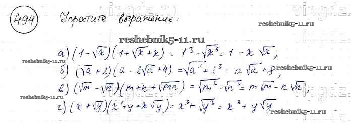 Готовая домашняя работа с ответами по Алгебре за 8 класс Макарычев, Миндюк, Нешков, Суворова Учебник Просвещение 2016 ФГОС - Упражнения 494