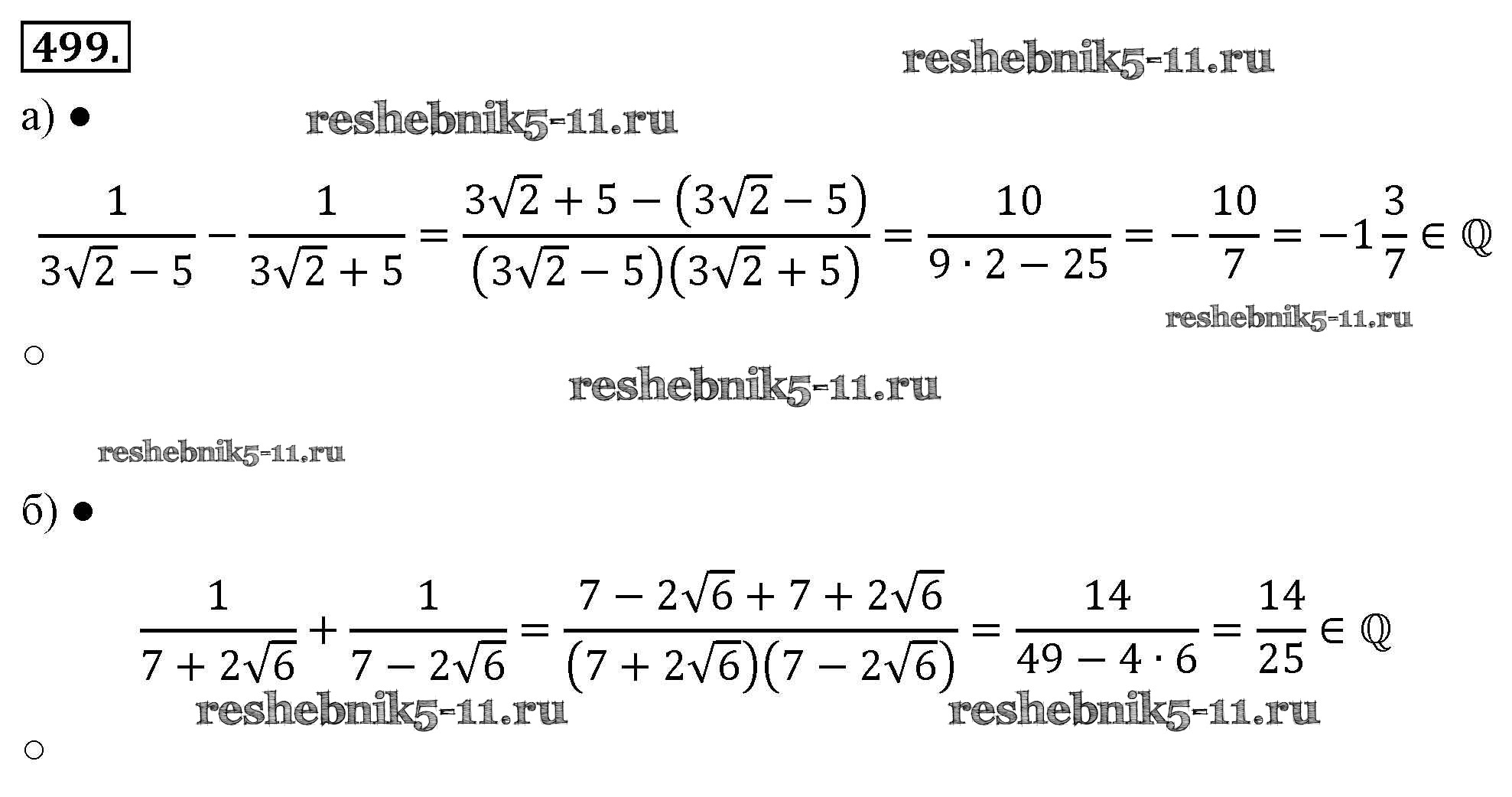 Готовая домашняя работа с ответами по Алгебре за 8 класс Макарычев, Миндюк, Нешков, Суворова Учебник Просвещение 2016 ФГОС - Упражнения 499