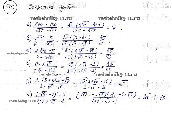 Готовая домашняя работа с ответами по Алгебре за 8 класс Макарычев, Миндюк, Нешков, Суворова Учебник Просвещение 2016 ФГОС - Упражнения 503
