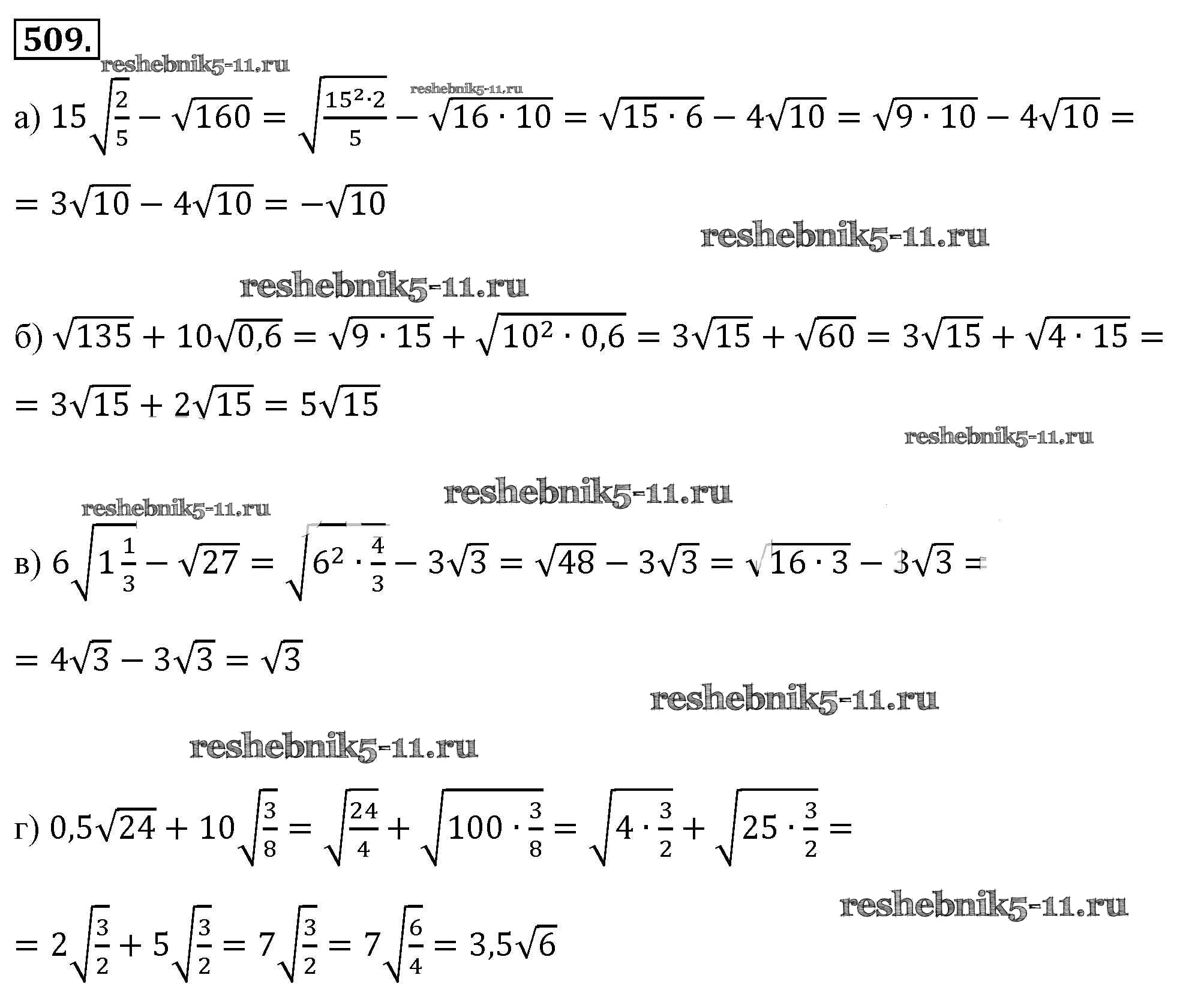 Готовая домашняя работа с ответами по Алгебре за 8 класс Макарычев, Миндюк, Нешков, Суворова Учебник Просвещение 2016 ФГОС - Упражнения 509