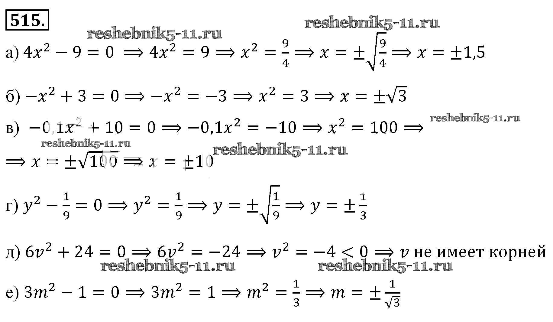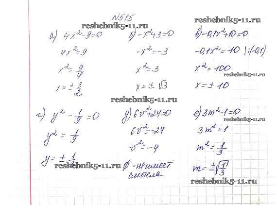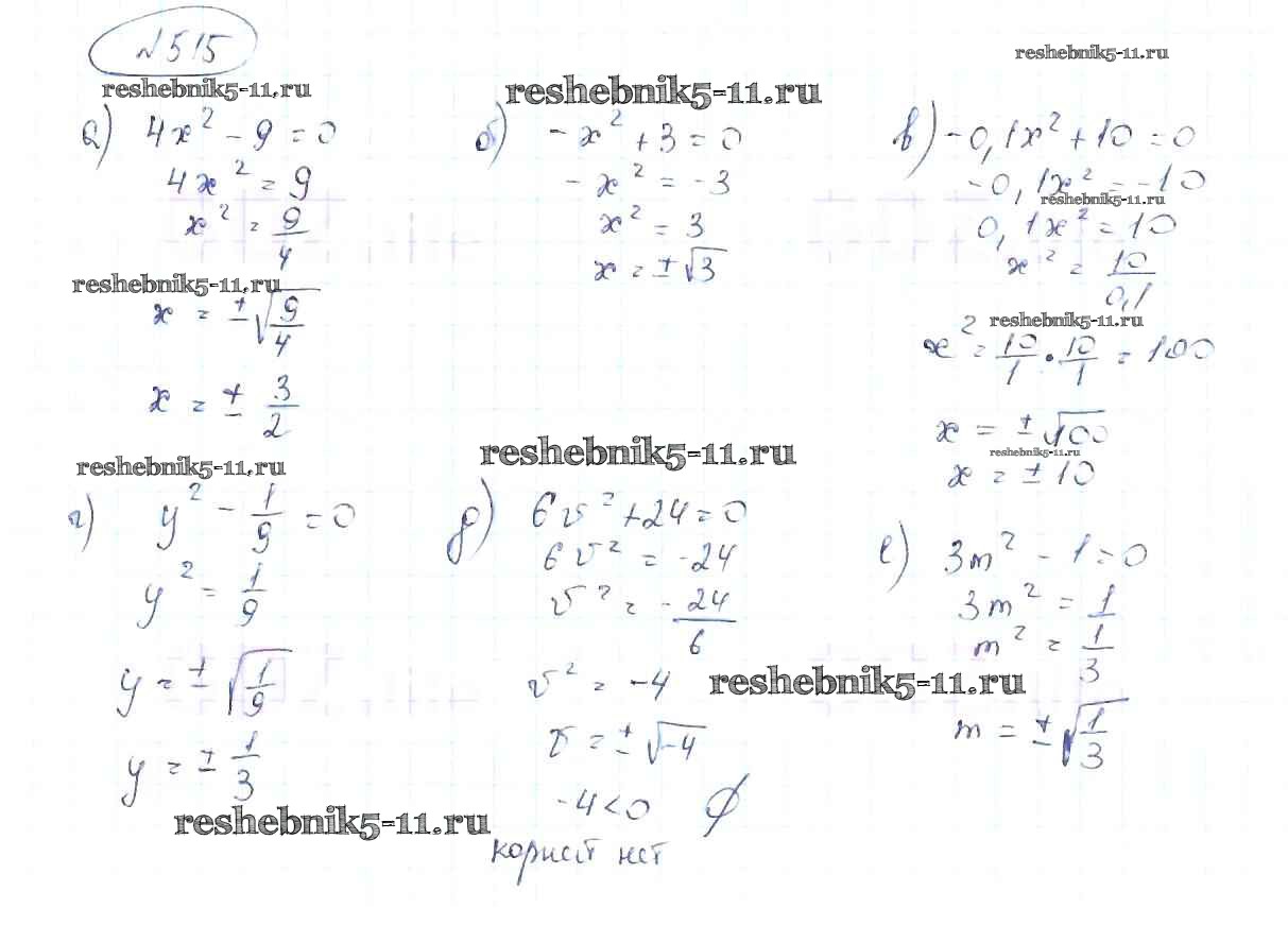 Готовая домашняя работа с ответами по Алгебре за 8 класс Макарычев, Миндюк, Нешков, Суворова Учебник Просвещение 2016 ФГОС - Упражнения 515