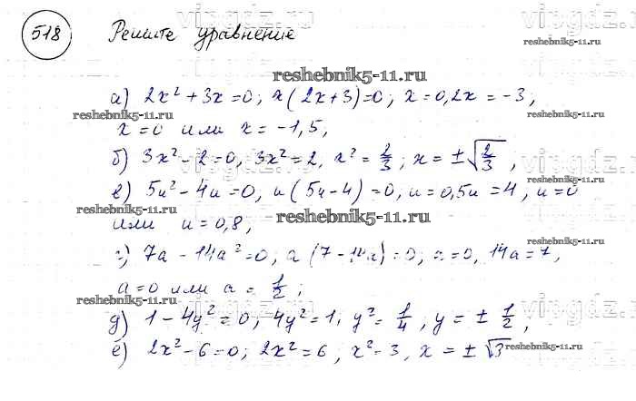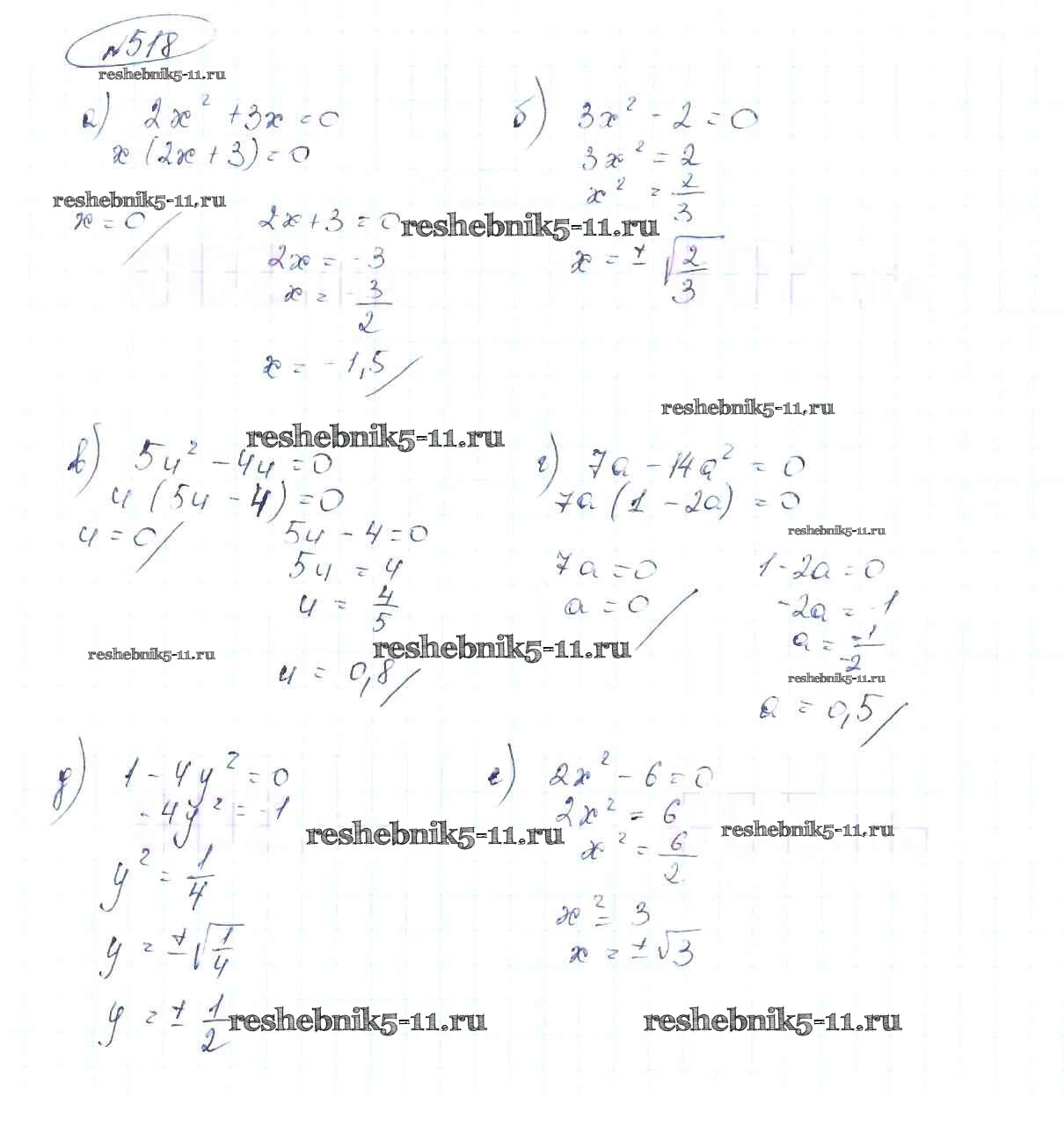 Готовая домашняя работа с ответами по Алгебре за 8 класс Макарычев, Миндюк, Нешков, Суворова Учебник Просвещение 2016 ФГОС - Упражнения 518