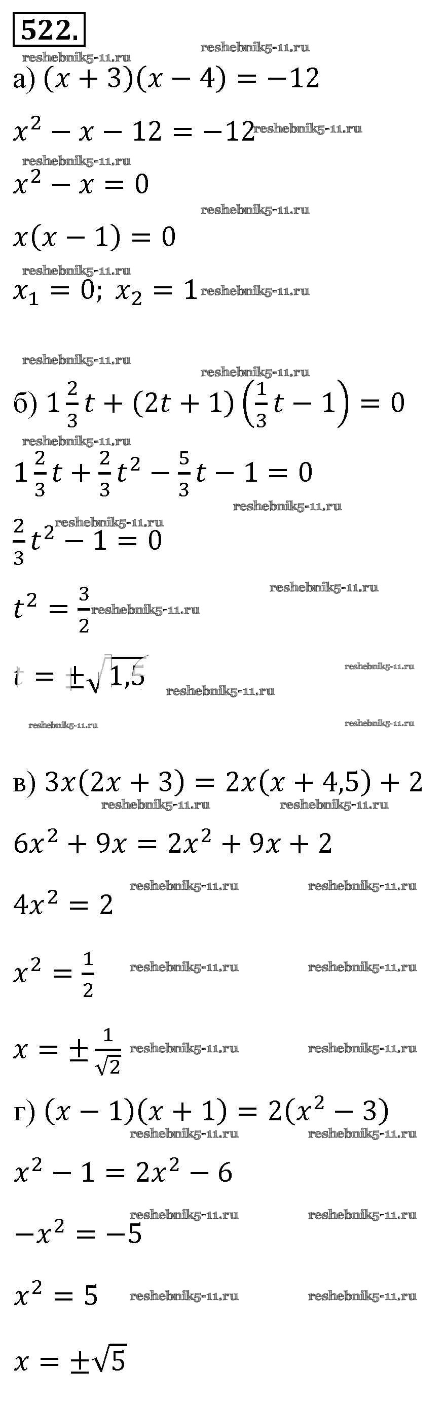 Готовая домашняя работа с ответами по Алгебре за 8 класс Макарычев, Миндюк, Нешков, Суворова Учебник Просвещение 2016 ФГОС - Упражнения 522