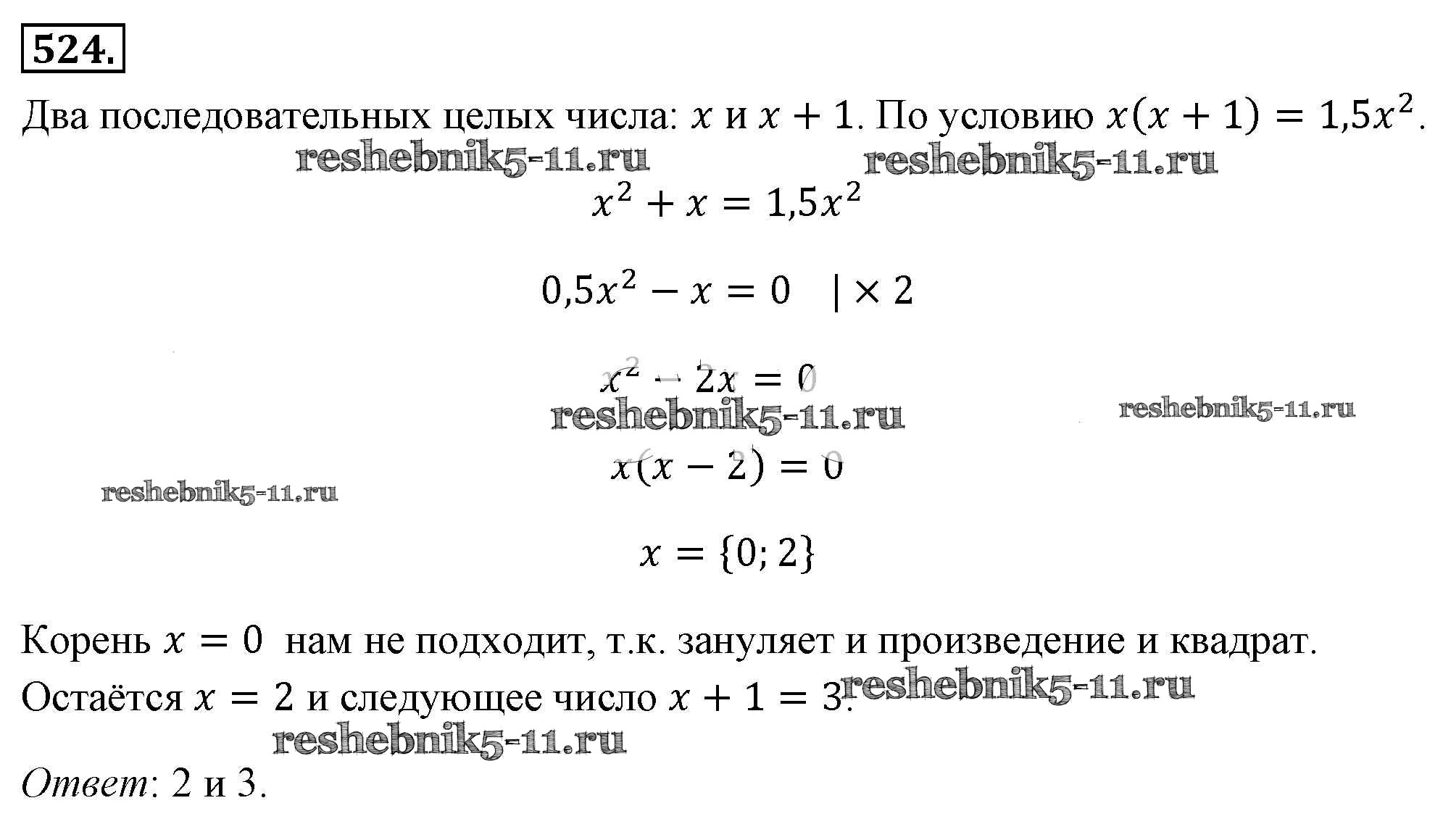 Готовая домашняя работа с ответами по Алгебре за 8 класс Макарычев, Миндюк, Нешков, Суворова Учебник Просвещение 2016 ФГОС - Упражнения 524