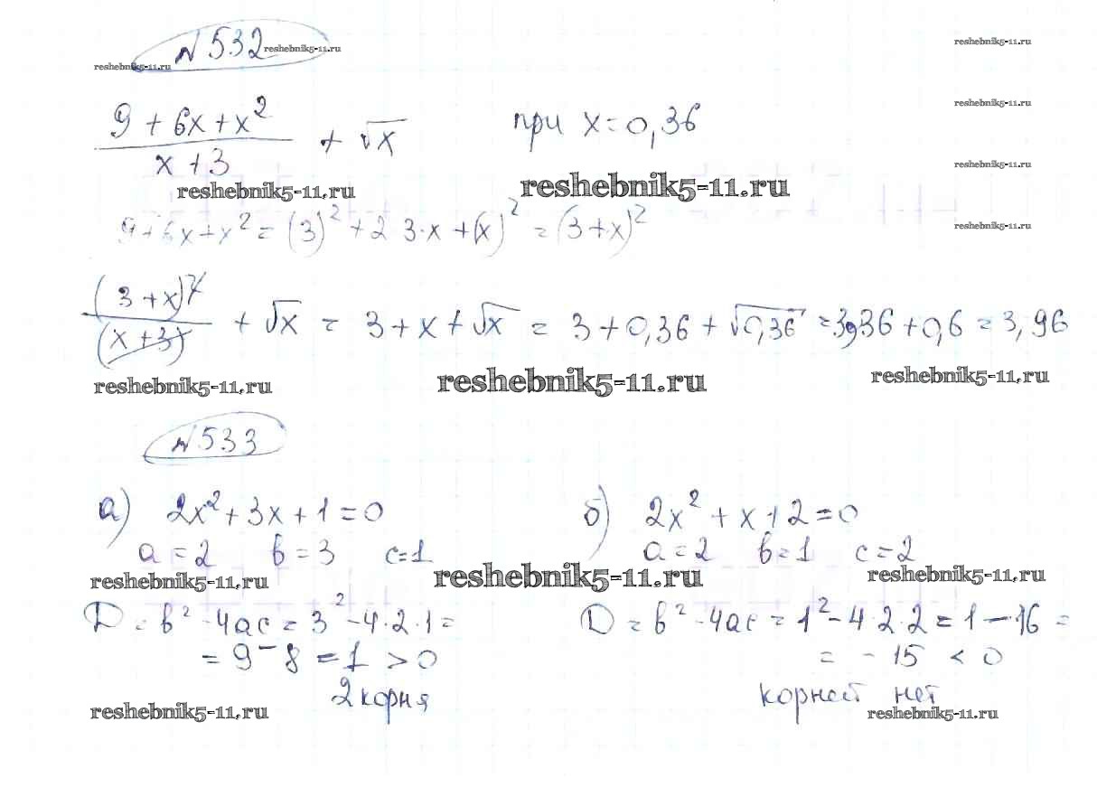 Готовая домашняя работа с ответами по Алгебре за 8 класс Макарычев, Миндюк, Нешков, Суворова Учебник Просвещение 2016 ФГОС - Упражнения 532