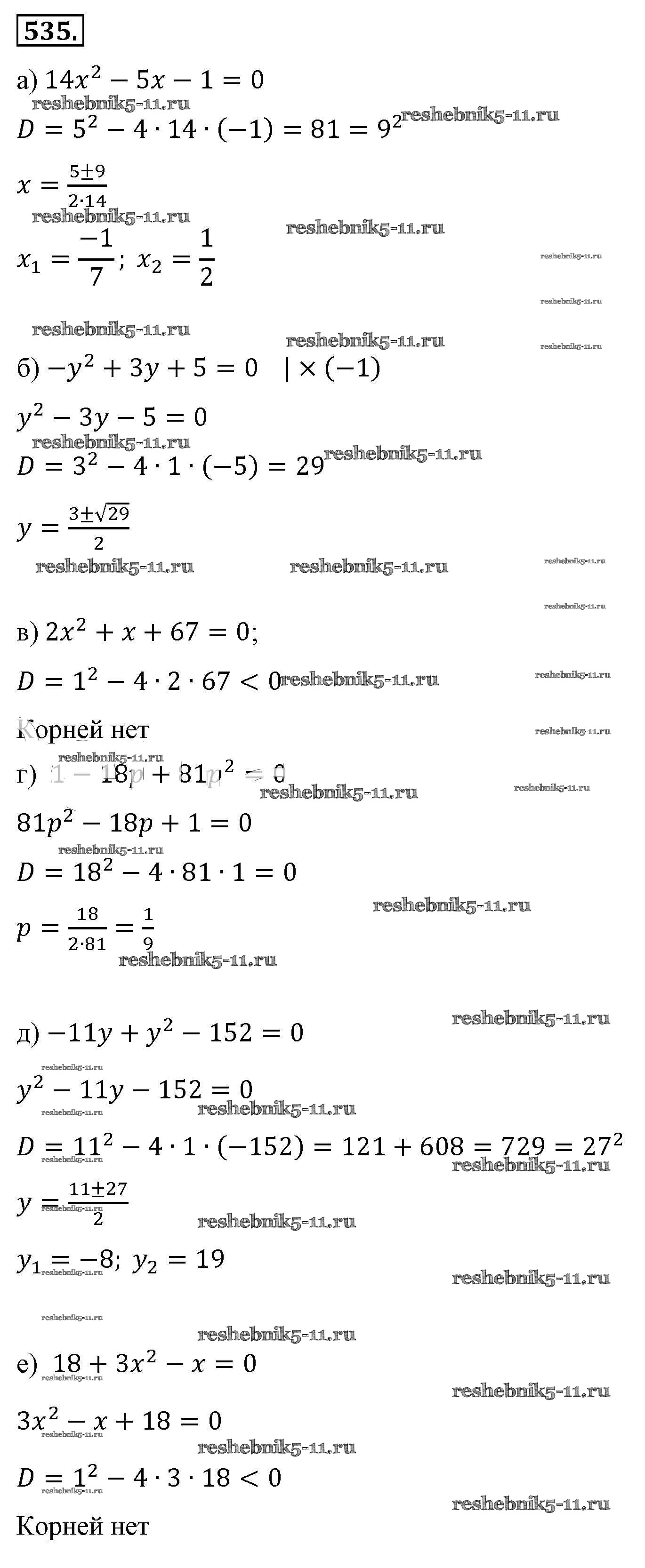 Готовая домашняя работа с ответами по Алгебре за 8 класс Макарычев, Миндюк, Нешков, Суворова Учебник Просвещение 2016 ФГОС - Упражнения 535
