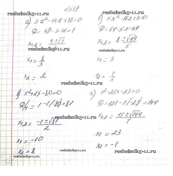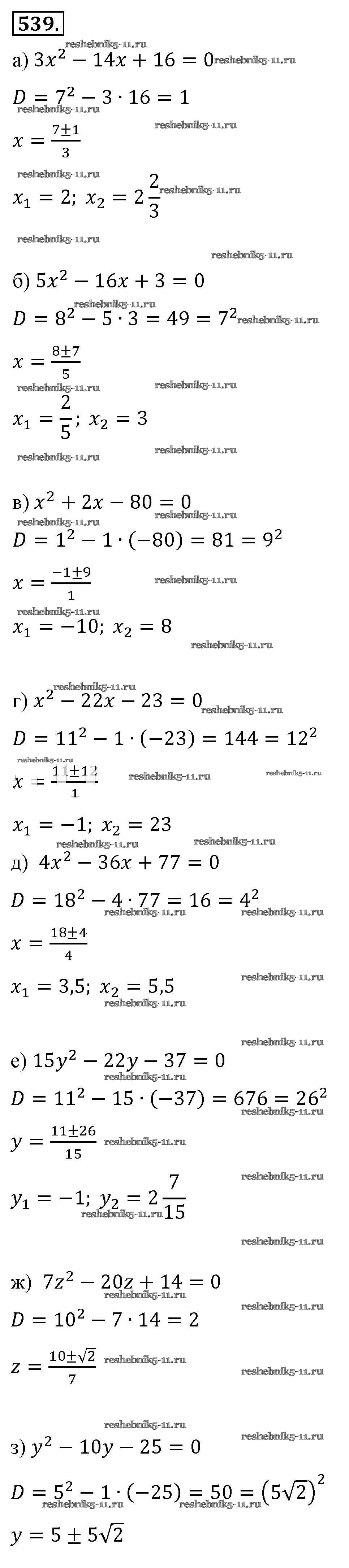 Готовая домашняя работа с ответами по Алгебре за 8 класс Макарычев, Миндюк, Нешков, Суворова Учебник Просвещение 2016 ФГОС - Упражнения 539
