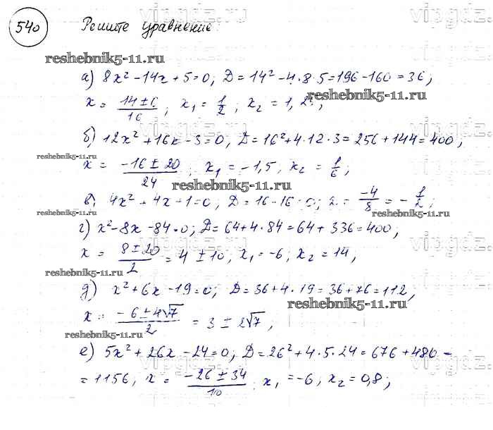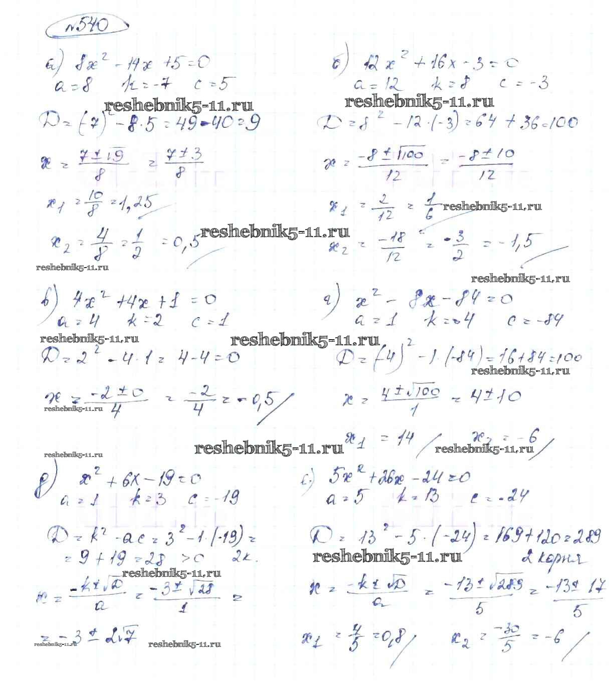 Готовая домашняя работа с ответами по Алгебре за 8 класс Макарычев, Миндюк, Нешков, Суворова Учебник Просвещение 2016 ФГОС - Упражнения 540