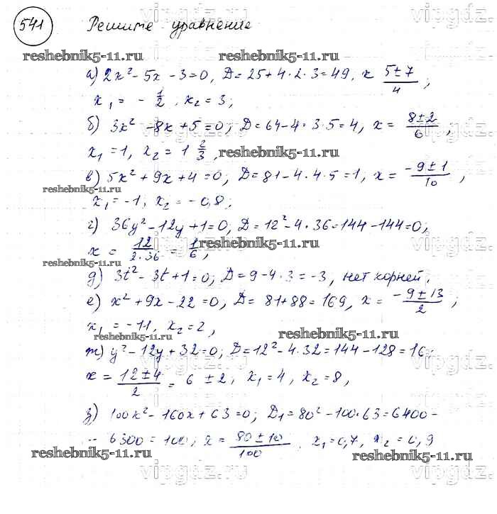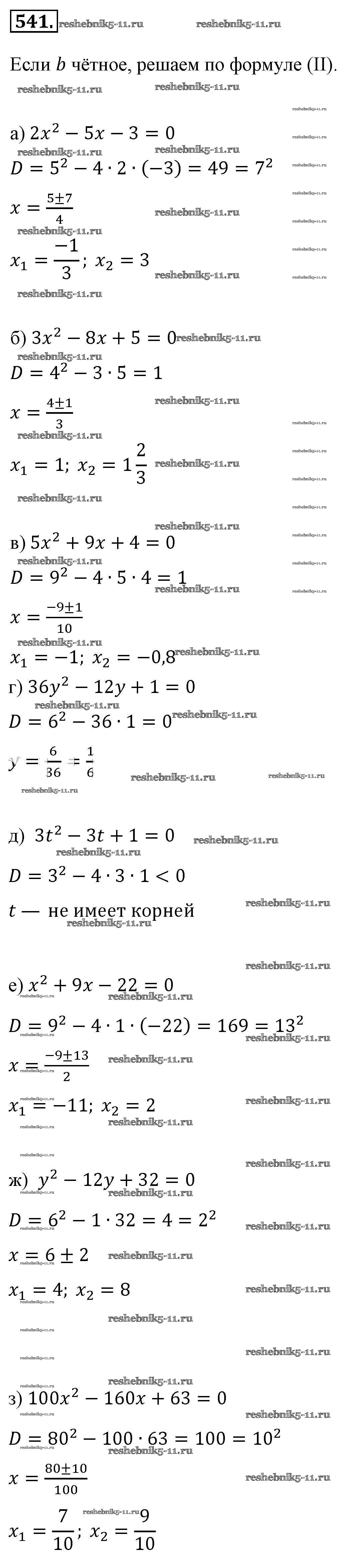 Готовая домашняя работа с ответами по Алгебре за 8 класс Макарычев, Миндюк, Нешков, Суворова Учебник Просвещение 2016 ФГОС - Упражнения 541
