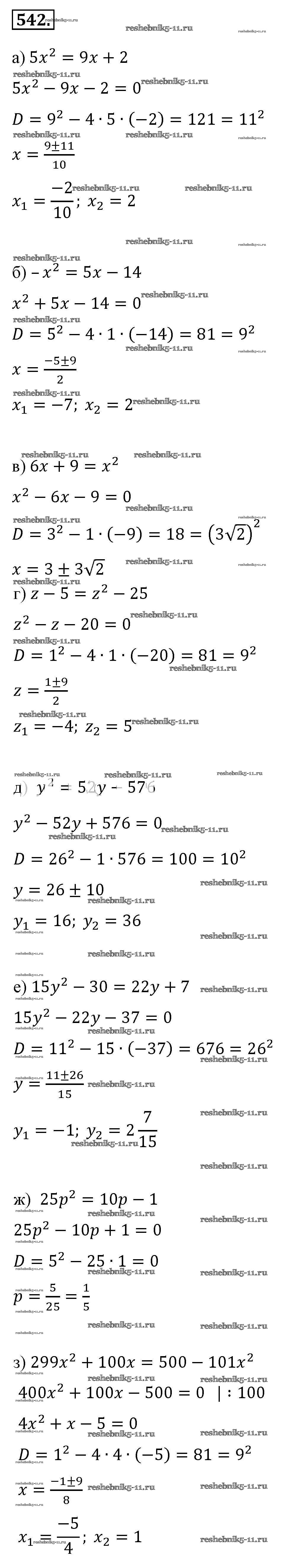 Готовая домашняя работа с ответами по Алгебре за 8 класс Макарычев, Миндюк, Нешков, Суворова Учебник Просвещение 2016 ФГОС - Упражнения 542