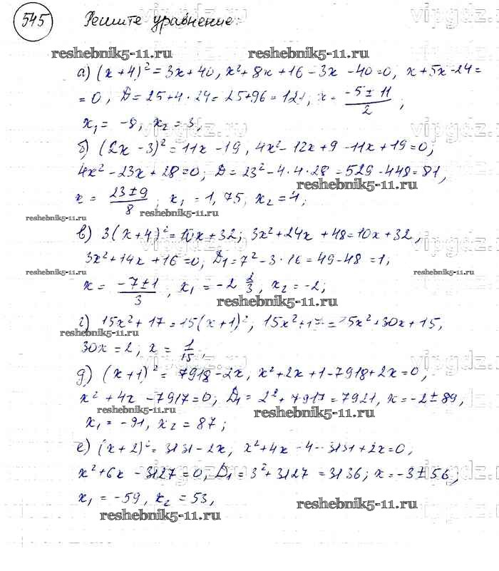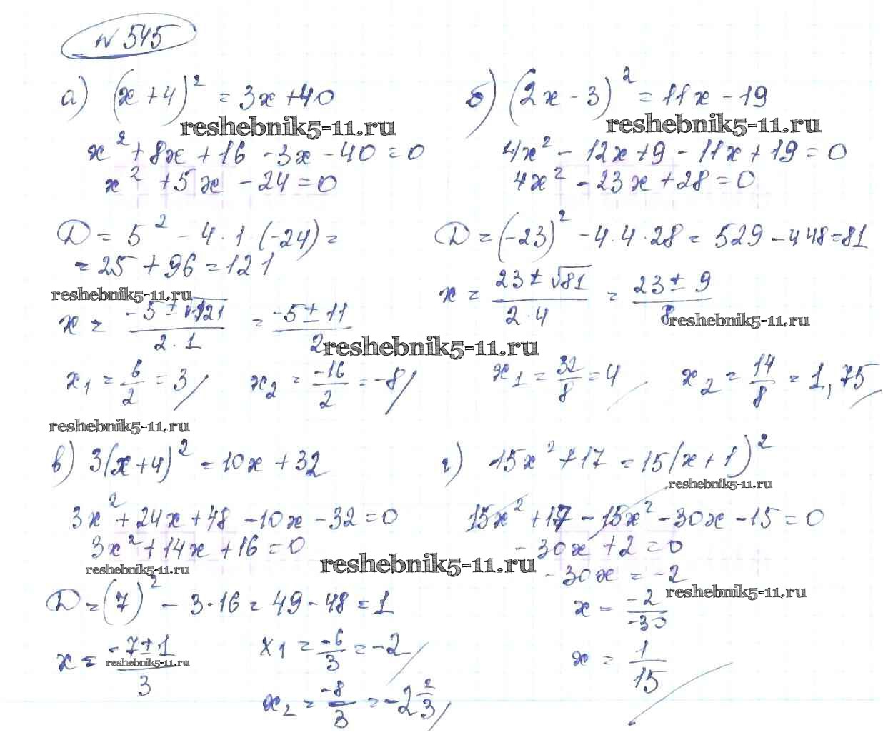 Готовая домашняя работа с ответами по Алгебре за 8 класс Макарычев, Миндюк, Нешков, Суворова Учебник Просвещение 2016 ФГОС - Упражнения 545