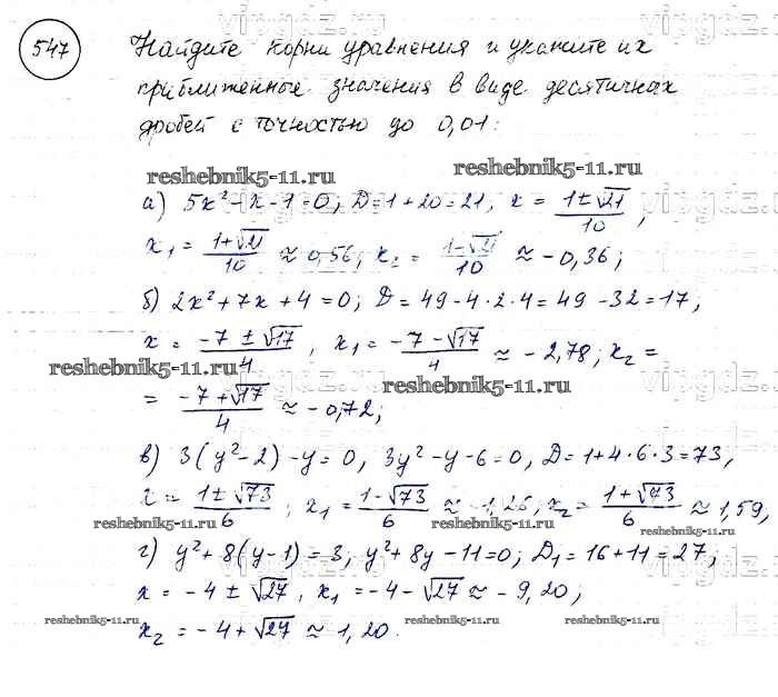 Готовая домашняя работа с ответами по Алгебре за 8 класс Макарычев, Миндюк, Нешков, Суворова Учебник Просвещение 2016 ФГОС - Упражнения 547