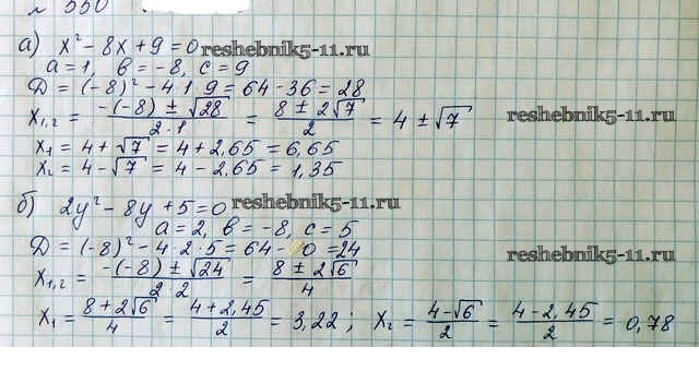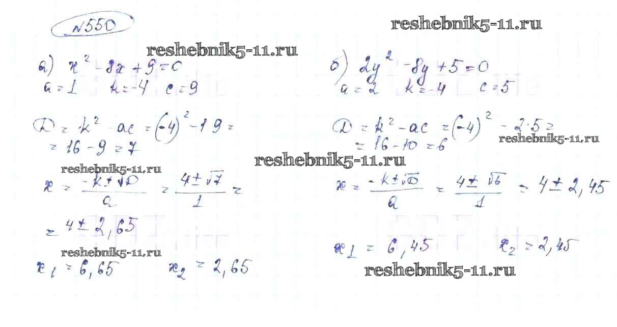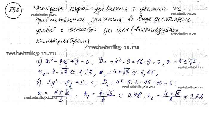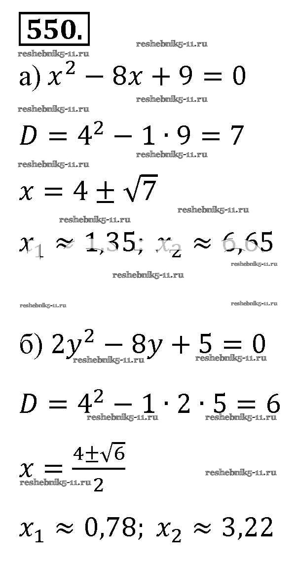 Готовая домашняя работа с ответами по Алгебре за 8 класс Макарычев, Миндюк, Нешков, Суворова Учебник Просвещение 2016 ФГОС - Упражнения 550