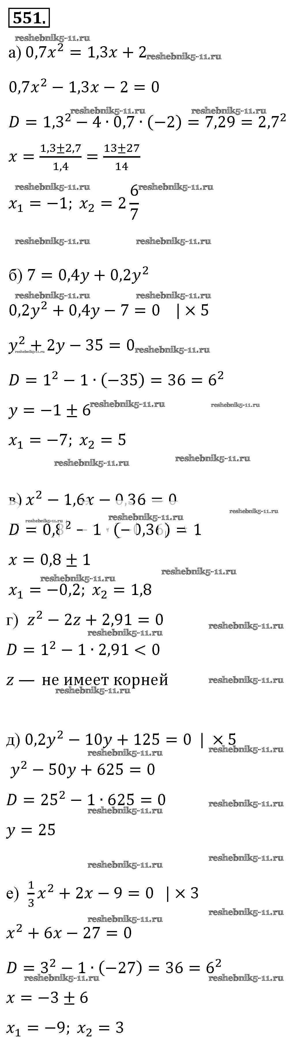 Готовая домашняя работа с ответами по Алгебре за 8 класс Макарычев, Миндюк, Нешков, Суворова Учебник Просвещение 2016 ФГОС - Упражнения 551