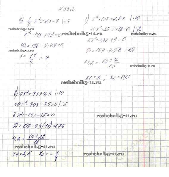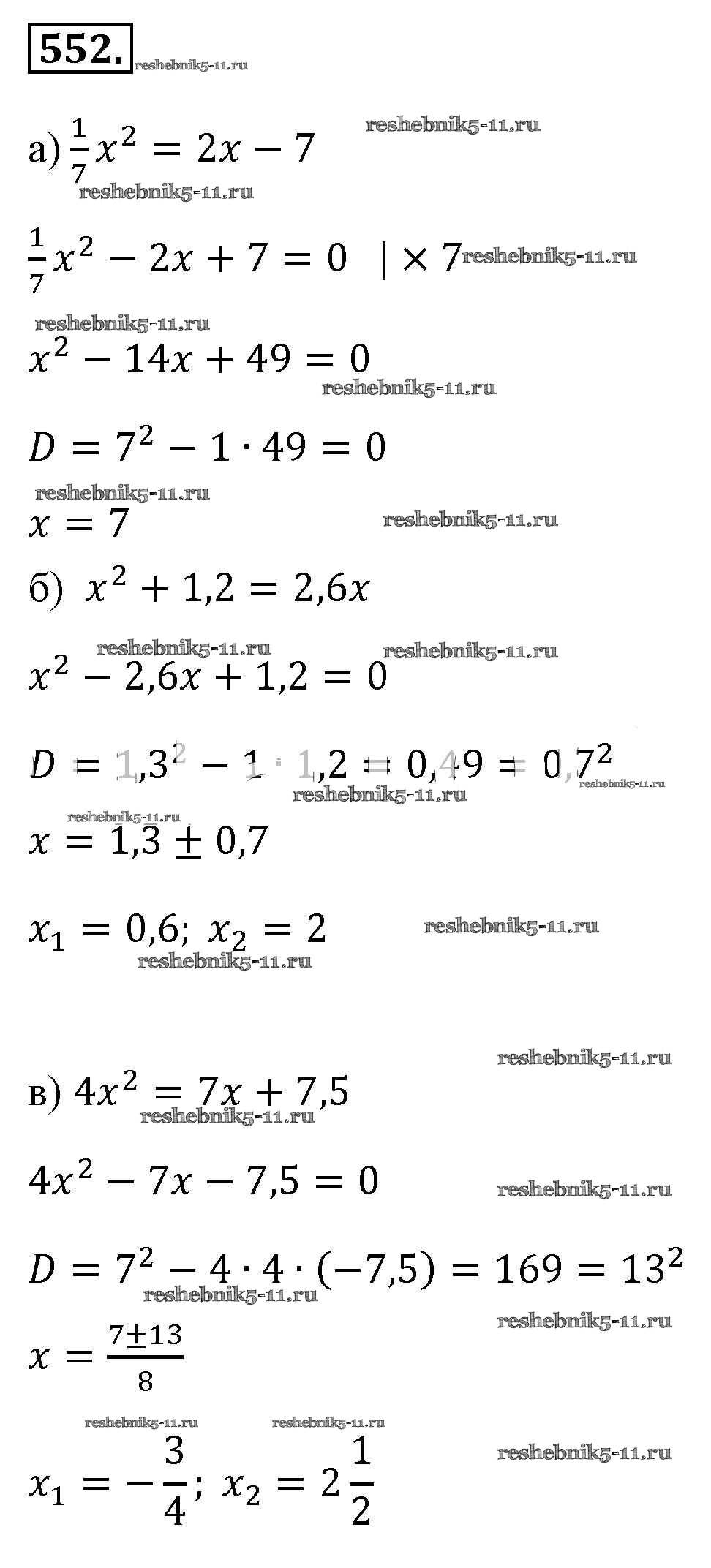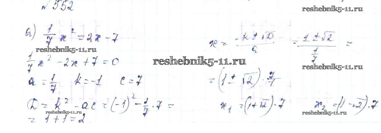 Готовая домашняя работа с ответами по Алгебре за 8 класс Макарычев, Миндюк, Нешков, Суворова Учебник Просвещение 2016 ФГОС - Упражнения 552