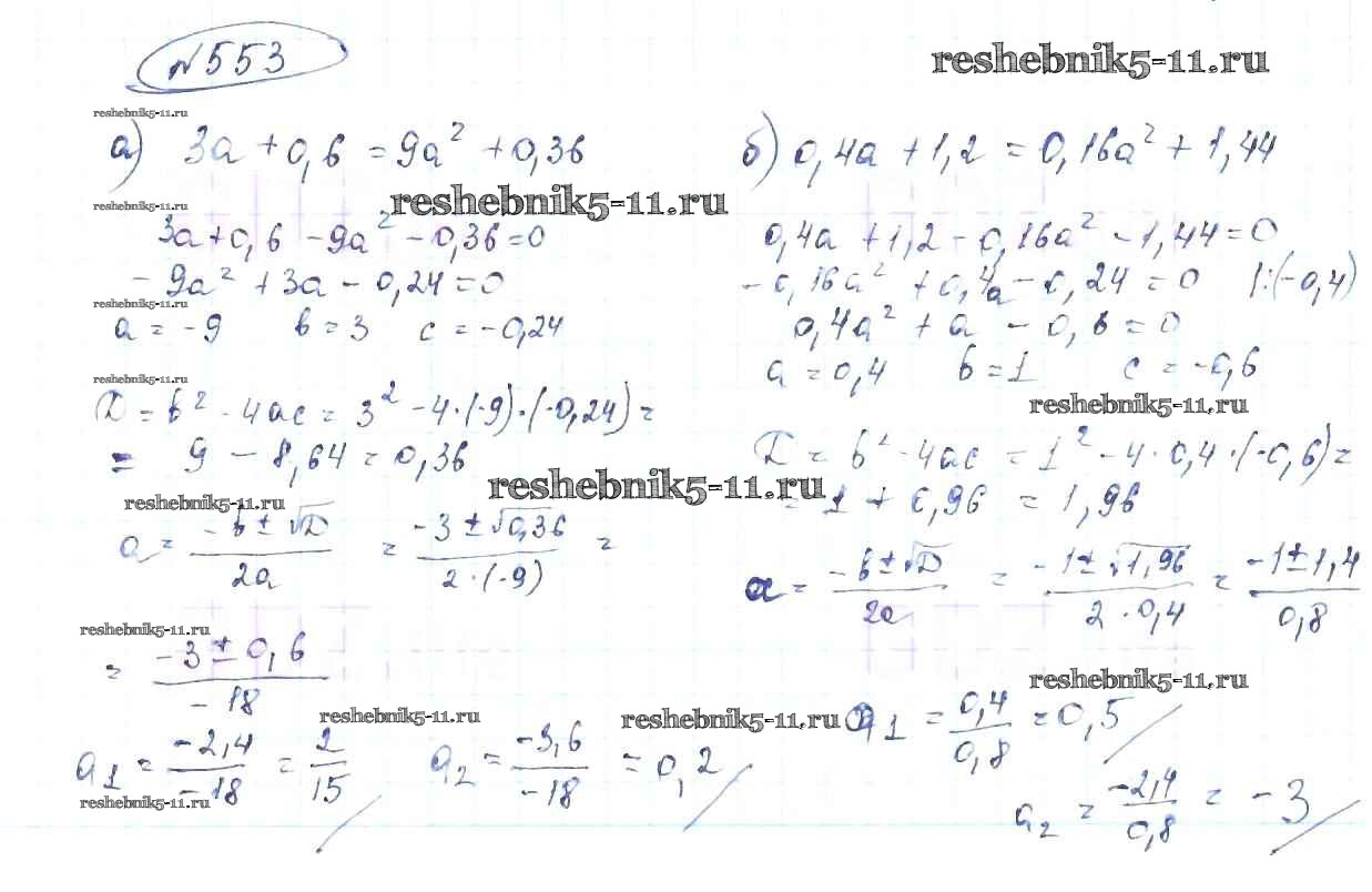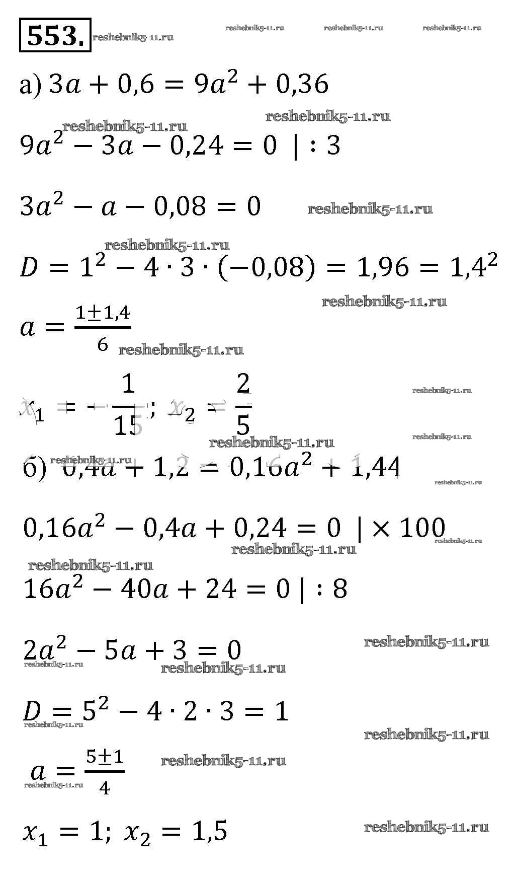 Готовая домашняя работа с ответами по Алгебре за 8 класс Макарычев, Миндюк, Нешков, Суворова Учебник Просвещение 2016 ФГОС - Упражнения 553