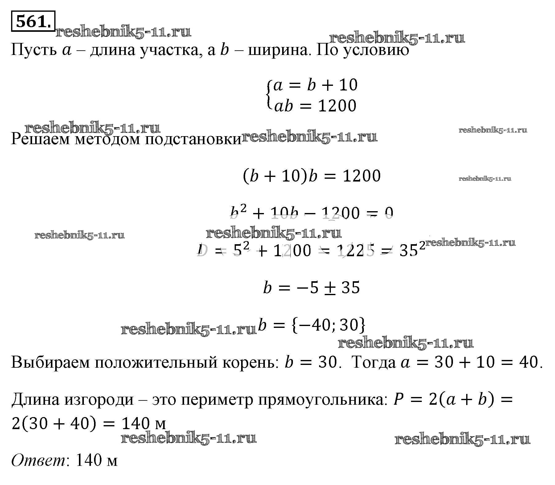 Готовая домашняя работа с ответами по Алгебре за 8 класс Макарычев, Миндюк, Нешков, Суворова Учебник Просвещение 2016 ФГОС - Упражнения 561