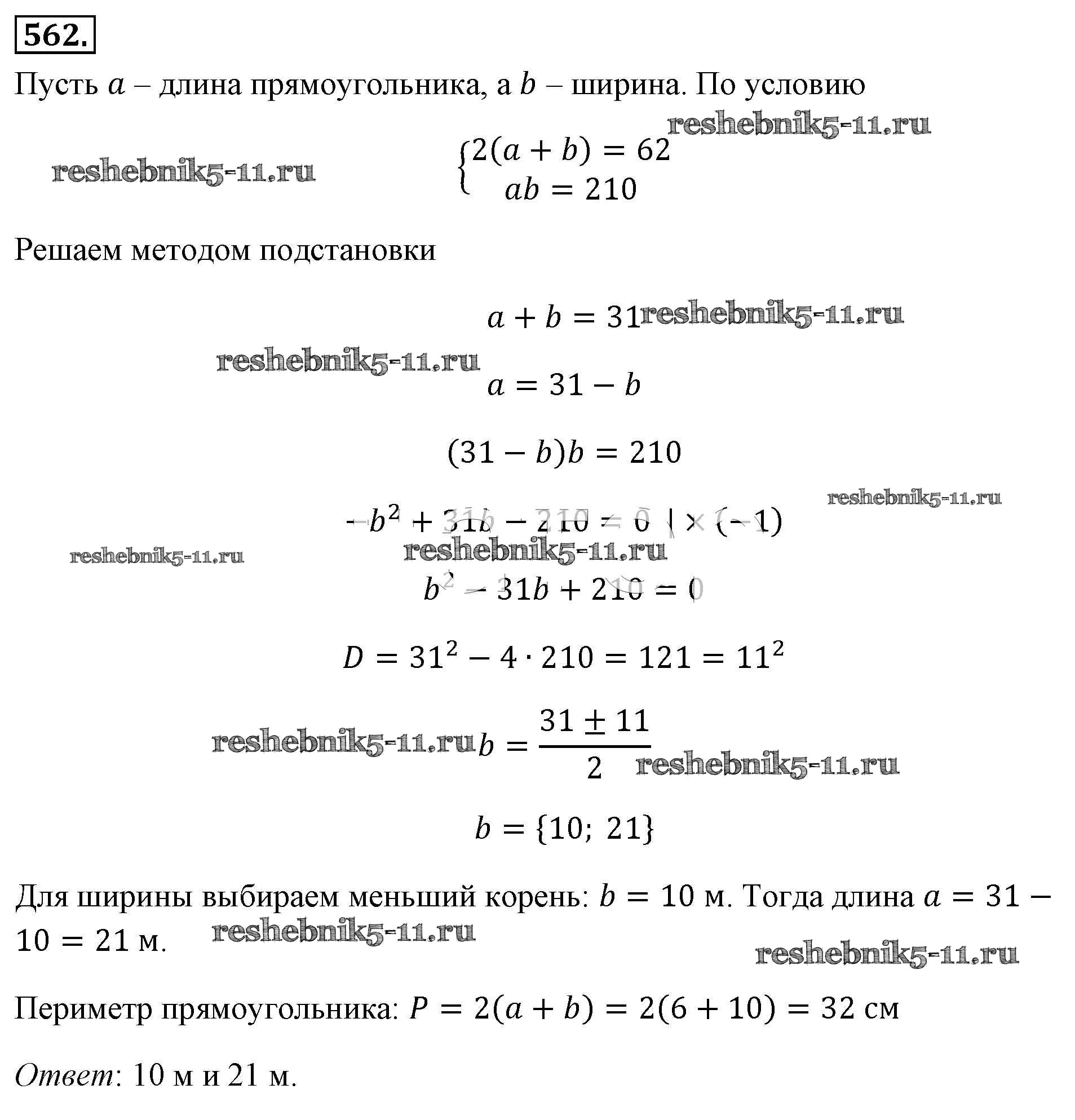 Готовая домашняя работа с ответами по Алгебре за 8 класс Макарычев, Миндюк, Нешков, Суворова Учебник Просвещение 2016 ФГОС - Упражнения 562