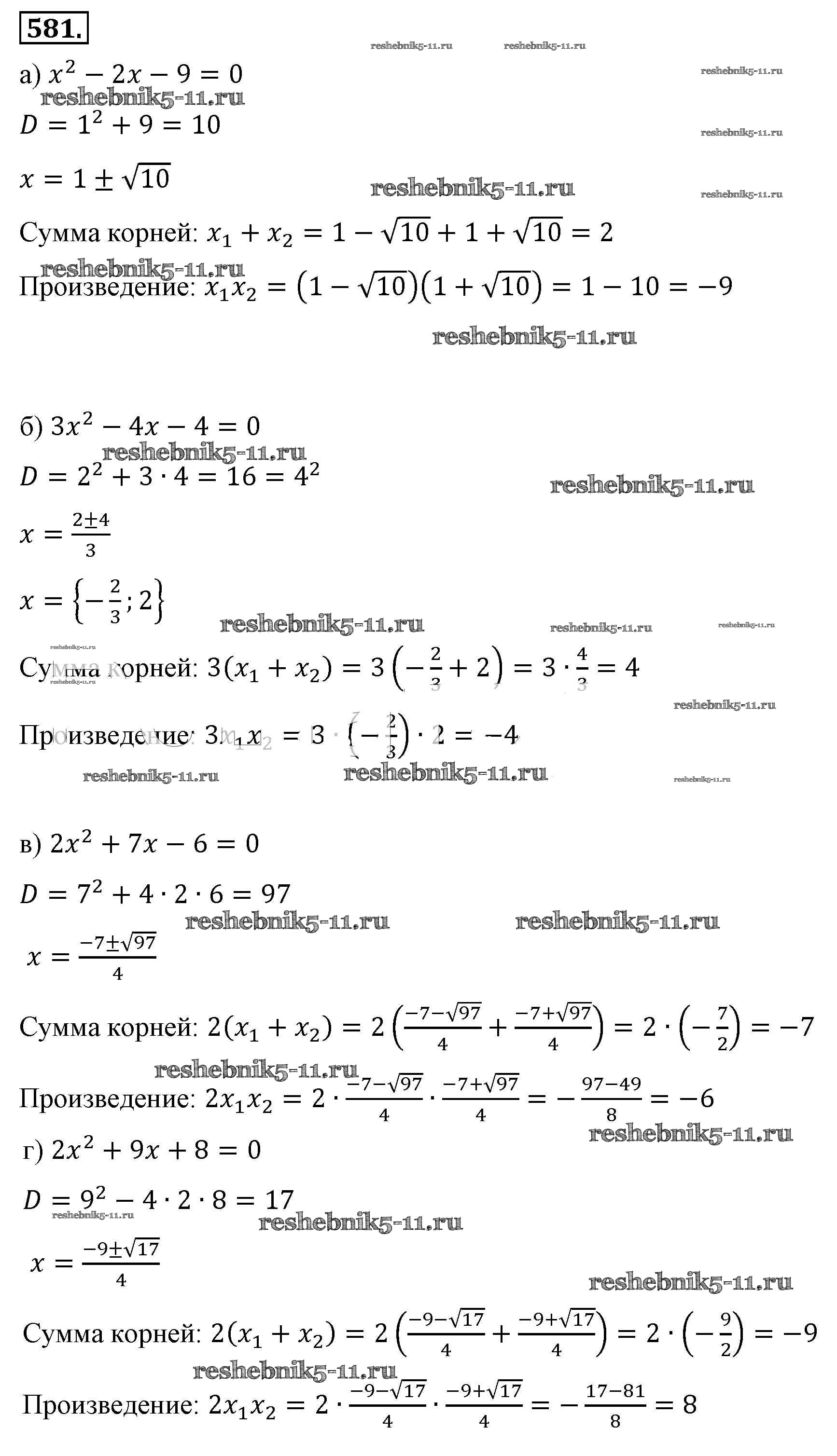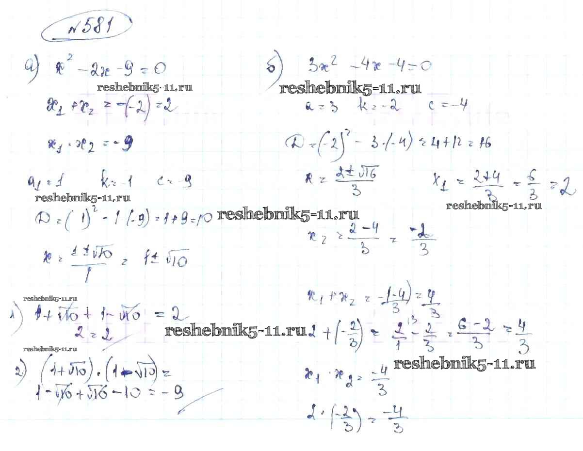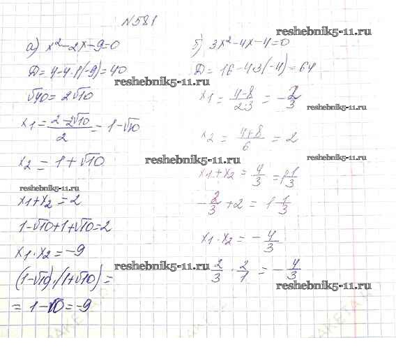 Готовая домашняя работа с ответами по Алгебре за 8 класс Макарычев, Миндюк, Нешков, Суворова Учебник Просвещение 2016 ФГОС - Упражнения 581