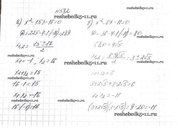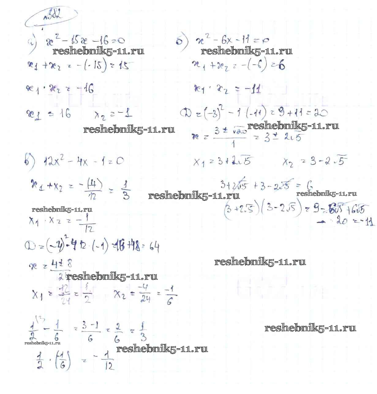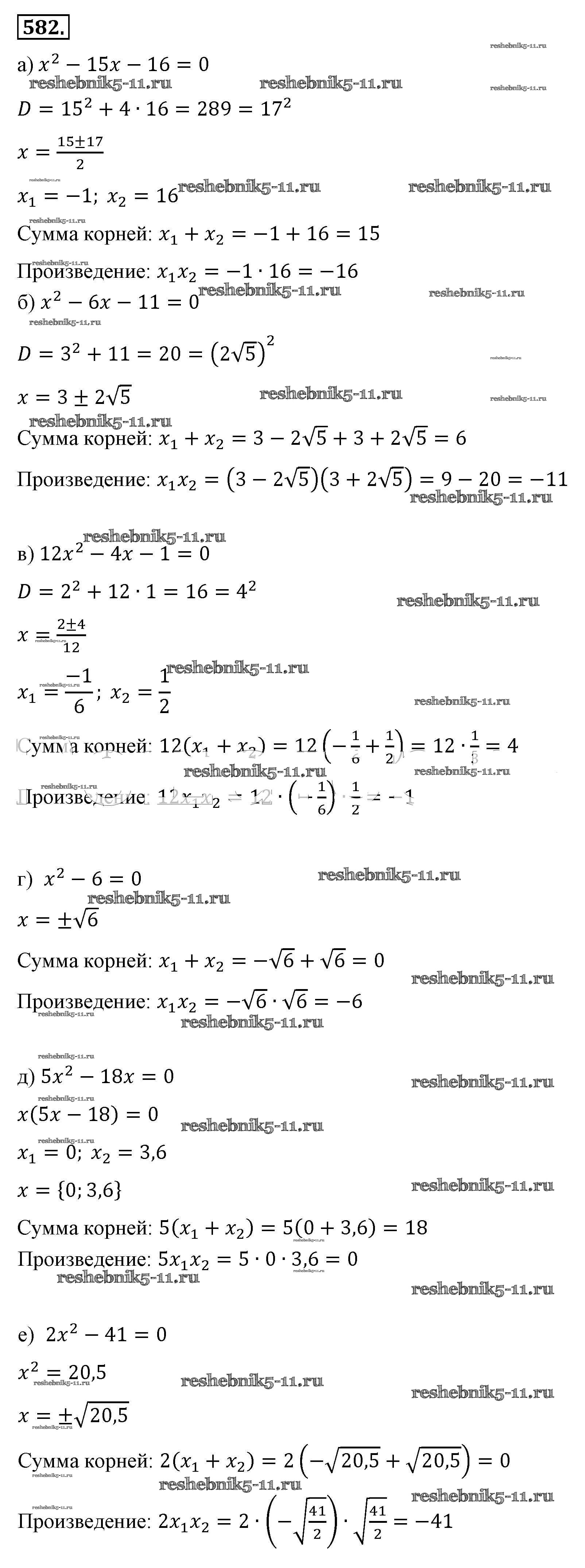 Готовая домашняя работа с ответами по Алгебре за 8 класс Макарычев, Миндюк, Нешков, Суворова Учебник Просвещение 2016 ФГОС - Упражнения 582