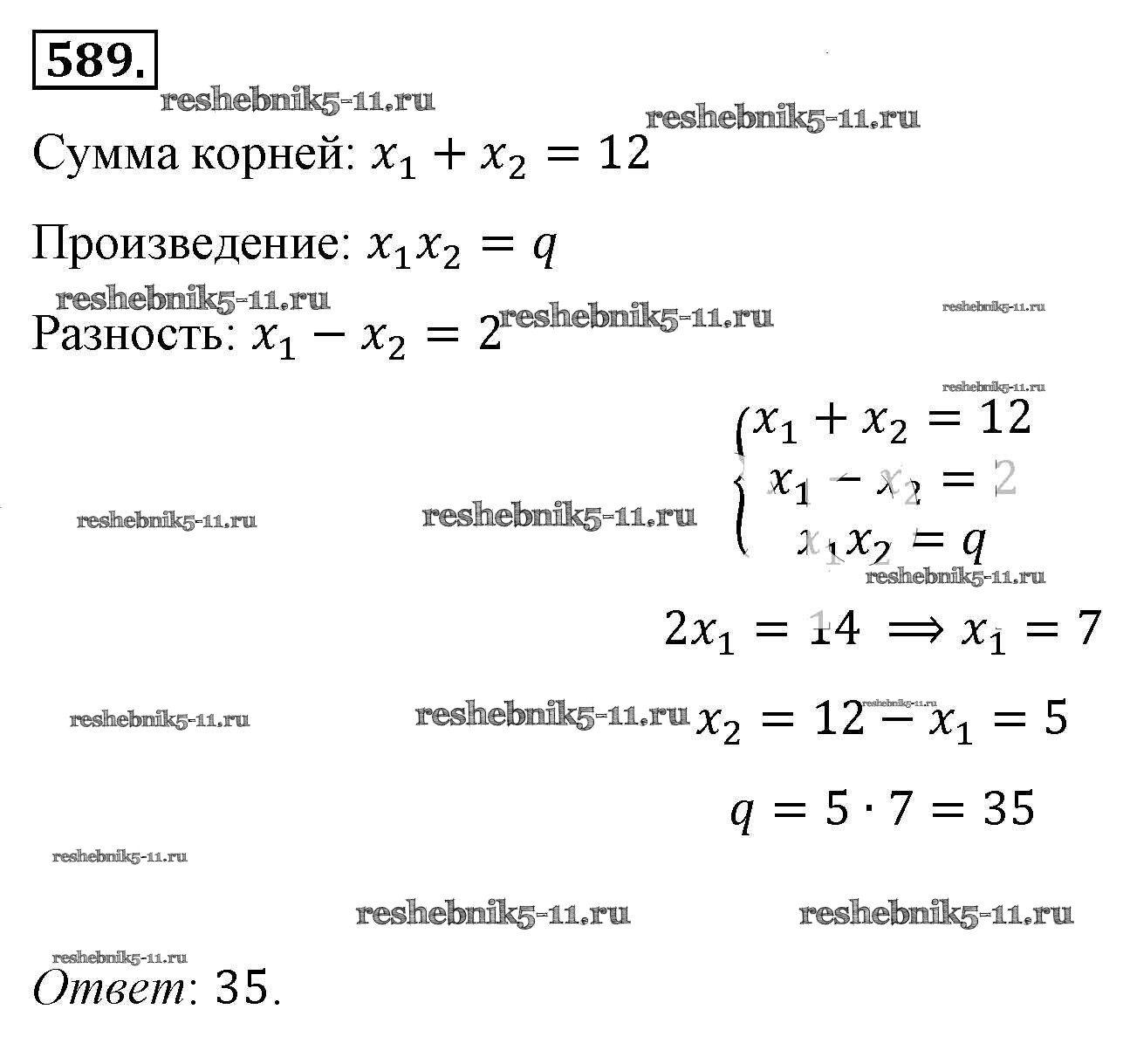 Готовая домашняя работа с ответами по Алгебре за 8 класс Макарычев, Миндюк, Нешков, Суворова Учебник Просвещение 2016 ФГОС - Упражнения 589