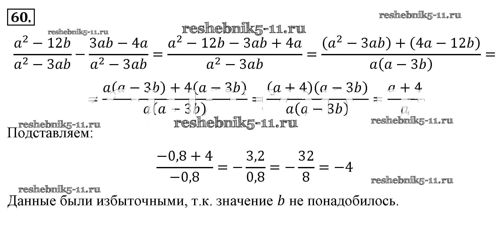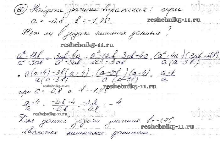 Готовая домашняя работа с ответами по Алгебре за 8 класс Макарычев, Миндюк, Нешков, Суворова Учебник Просвещение 2016 ФГОС - Упражнения 60