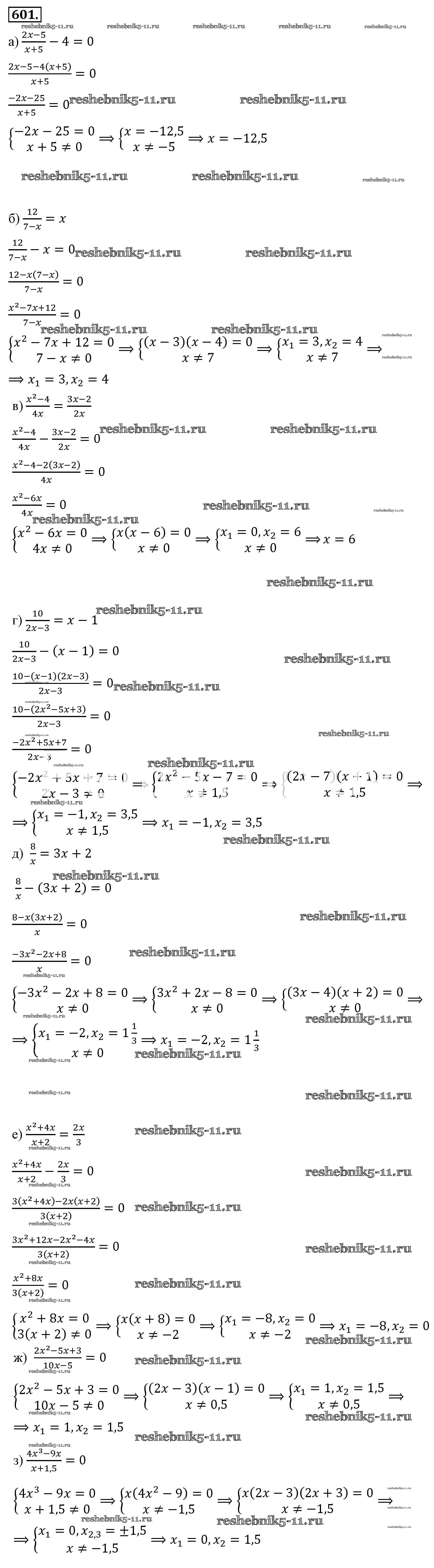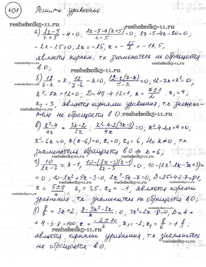 Готовая домашняя работа с ответами по Алгебре за 8 класс Макарычев, Миндюк, Нешков, Суворова Учебник Просвещение 2016 ФГОС - Упражнения 601