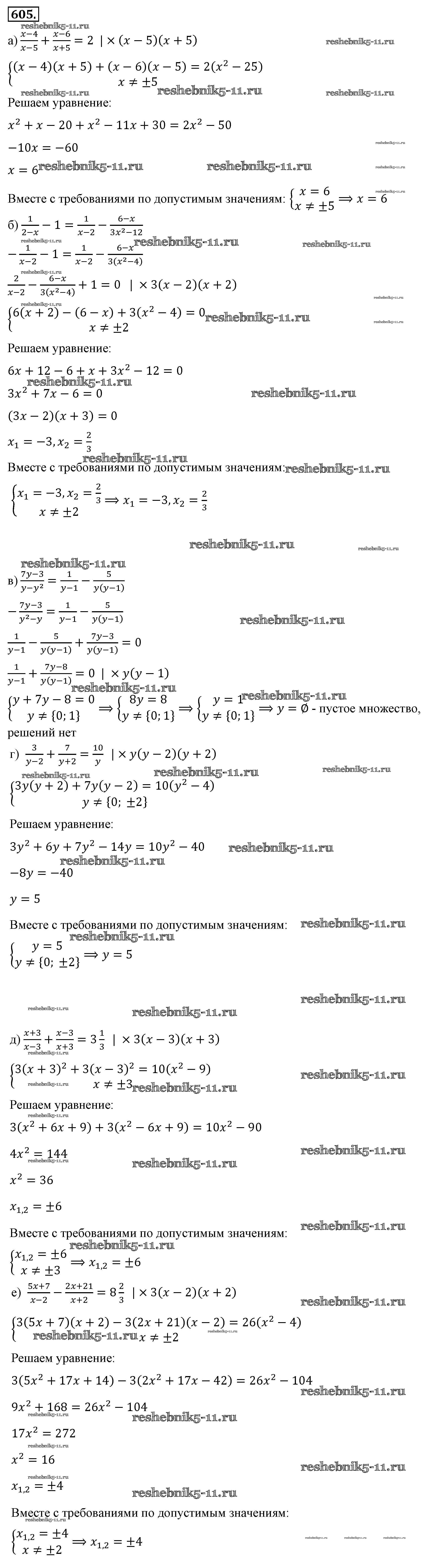 Готовая домашняя работа с ответами по Алгебре за 8 класс Макарычев, Миндюк, Нешков, Суворова Учебник Просвещение 2016 ФГОС - Упражнения 605