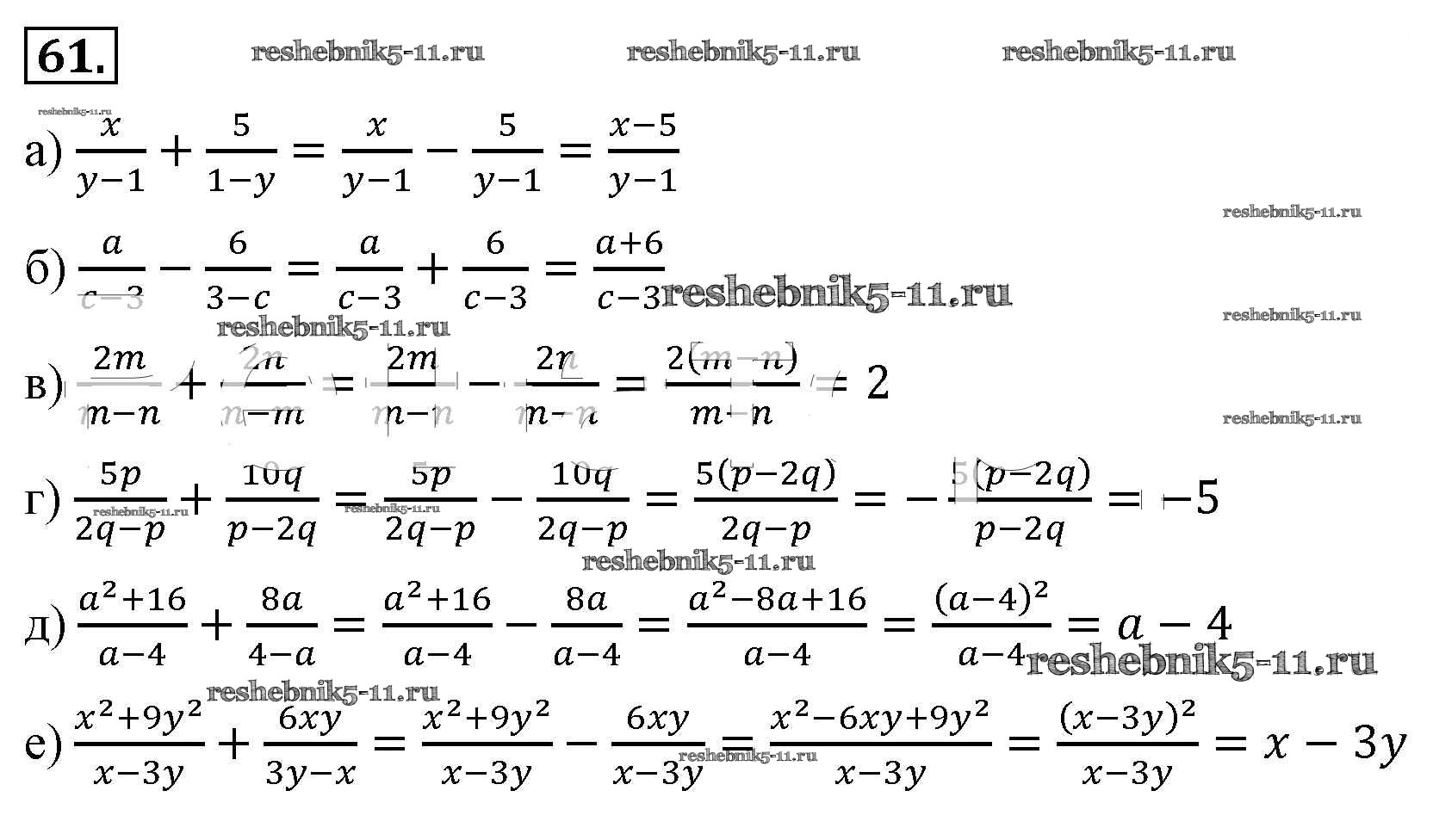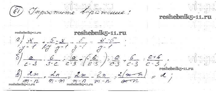Готовая домашняя работа с ответами по Алгебре за 8 класс Макарычев, Миндюк, Нешков, Суворова Учебник Просвещение 2016 ФГОС - Упражнения 61