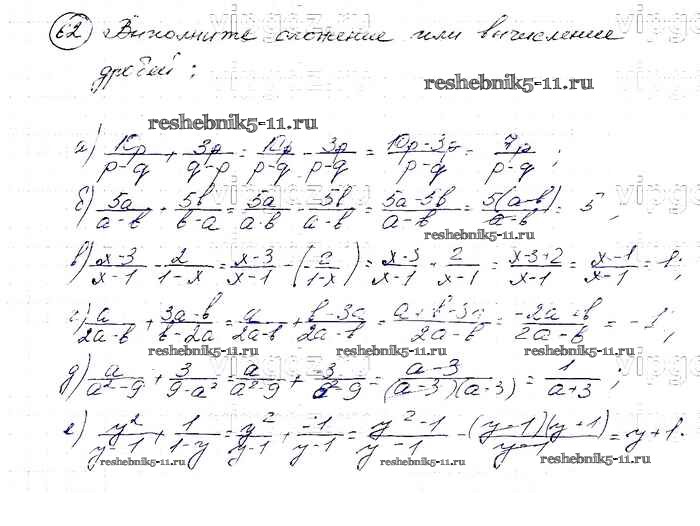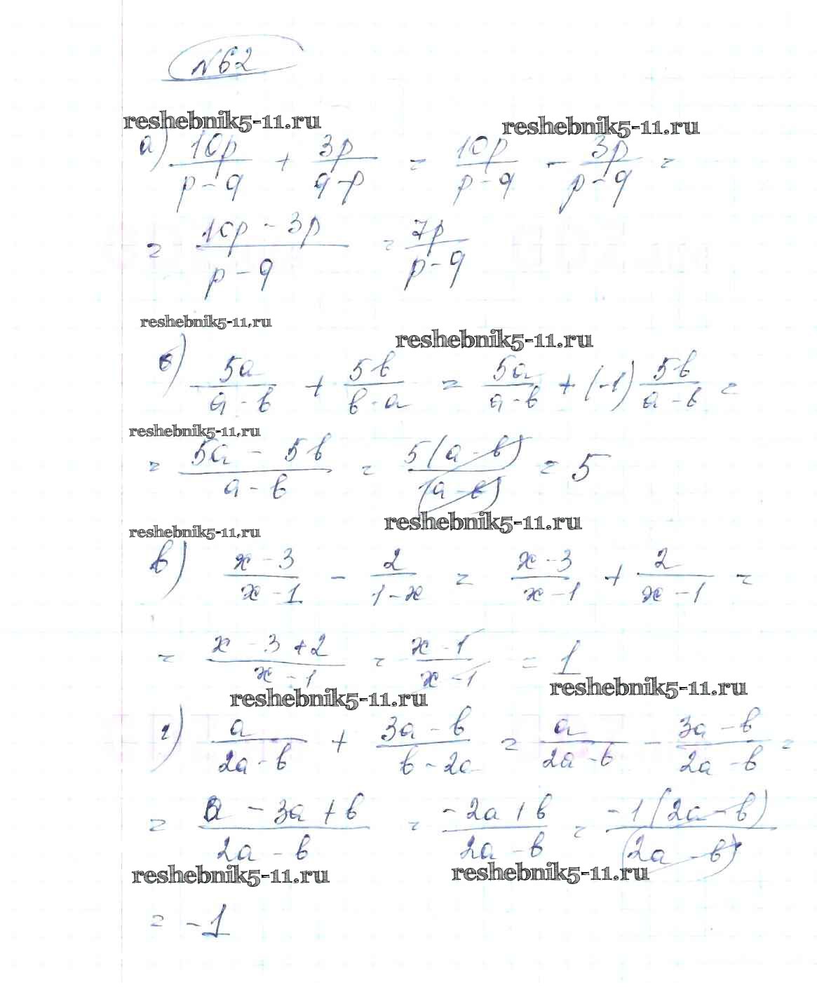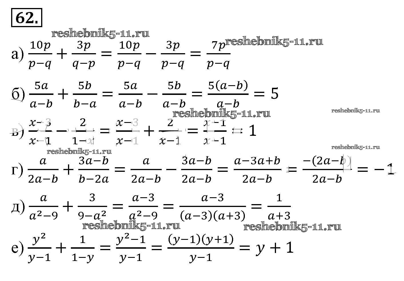 Готовая домашняя работа с ответами по Алгебре за 8 класс Макарычев, Миндюк, Нешков, Суворова Учебник Просвещение 2016 ФГОС - Упражнения 62