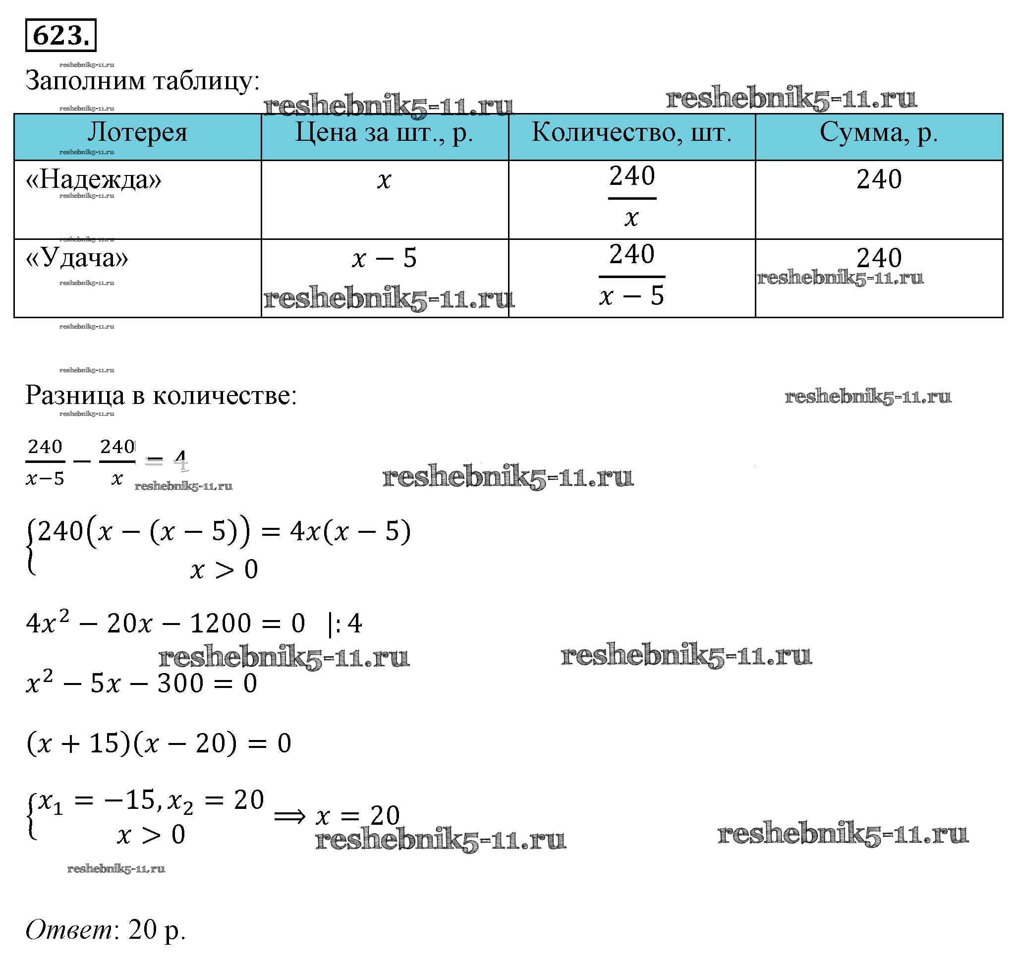 Готовая домашняя работа с ответами по Алгебре за 8 класс Макарычев, Миндюк, Нешков, Суворова Учебник Просвещение 2016 ФГОС - Упражнения 623