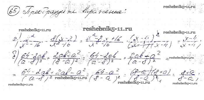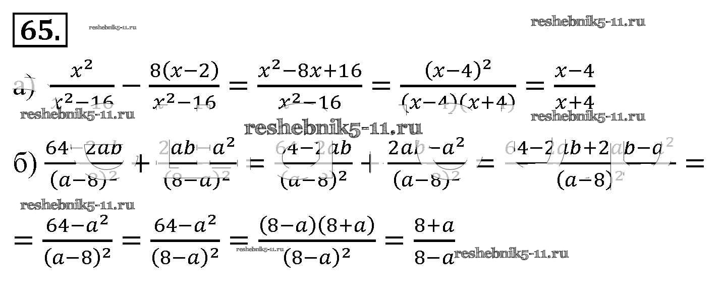Готовая домашняя работа с ответами по Алгебре за 8 класс Макарычев, Миндюк, Нешков, Суворова Учебник Просвещение 2016 ФГОС - Упражнения 65
