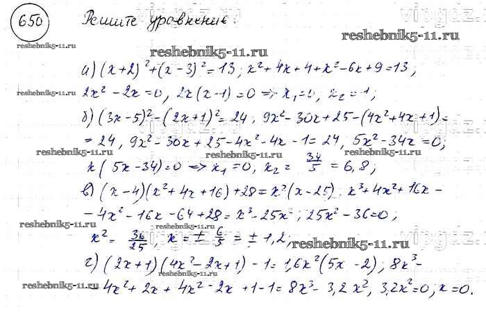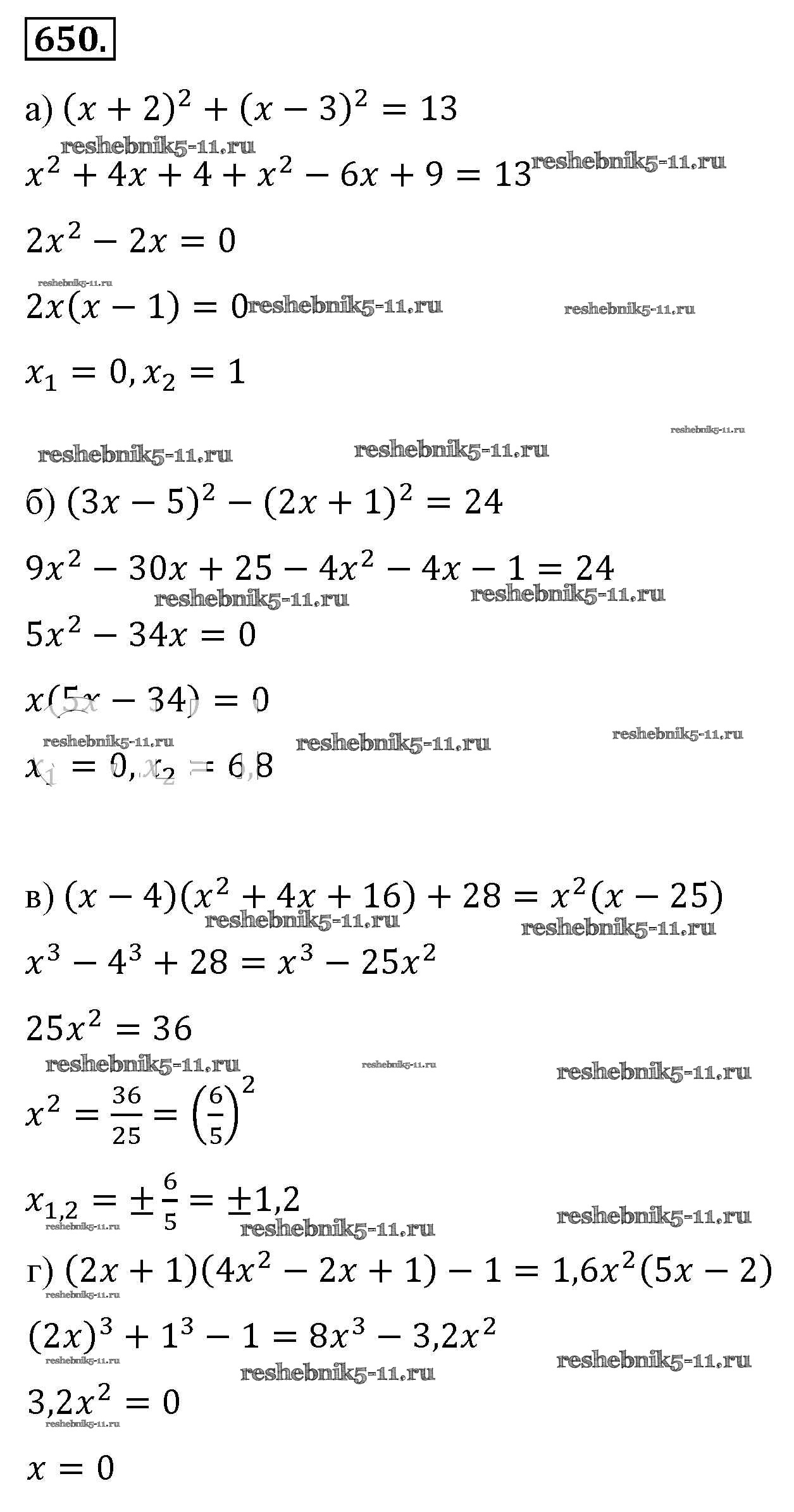Готовая домашняя работа с ответами по Алгебре за 8 класс Макарычев, Миндюк, Нешков, Суворова Учебник Просвещение 2016 ФГОС - Упражнения 650