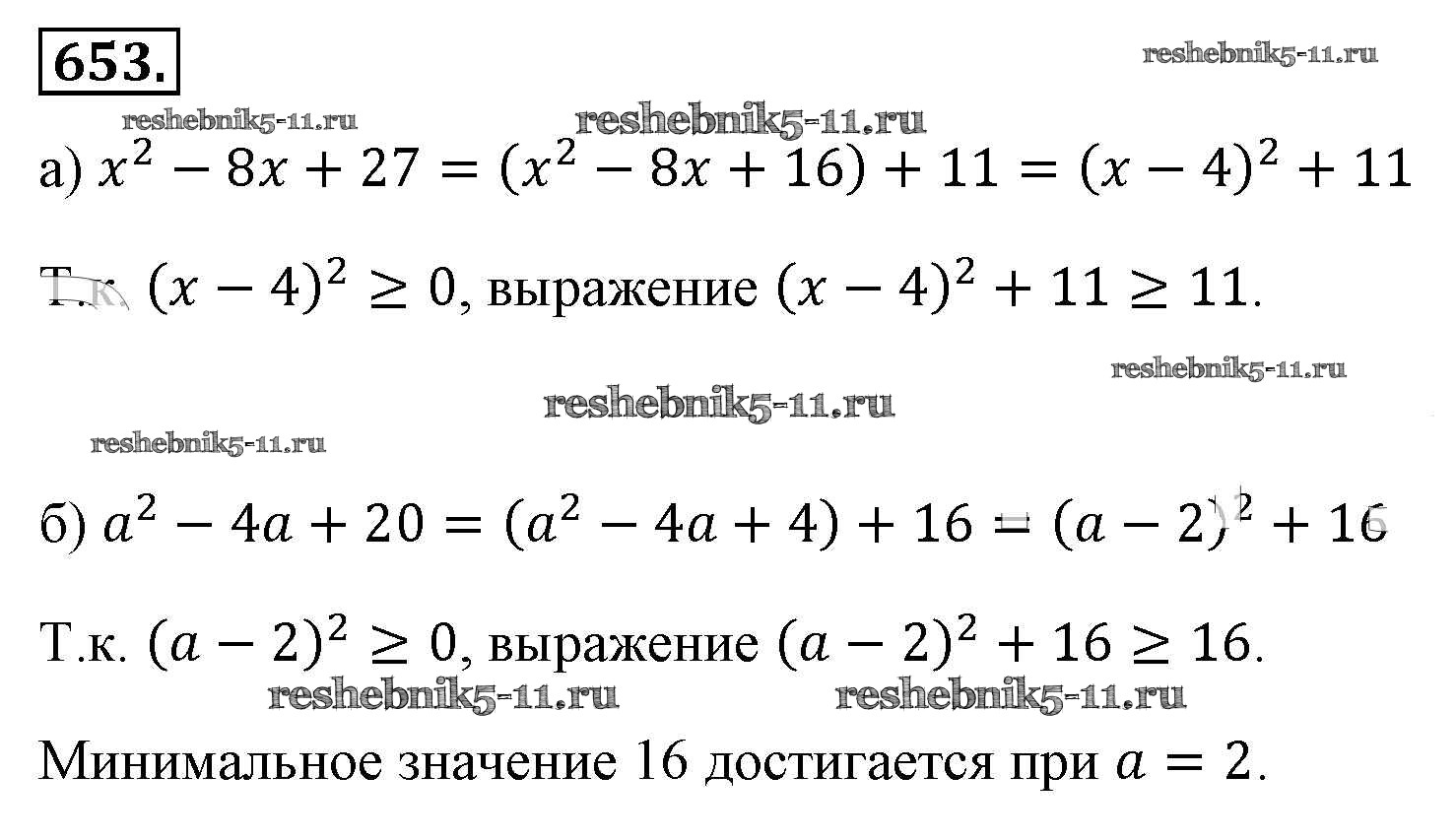Готовая домашняя работа с ответами по Алгебре за 8 класс Макарычев, Миндюк, Нешков, Суворова Учебник Просвещение 2016 ФГОС - Упражнения 653