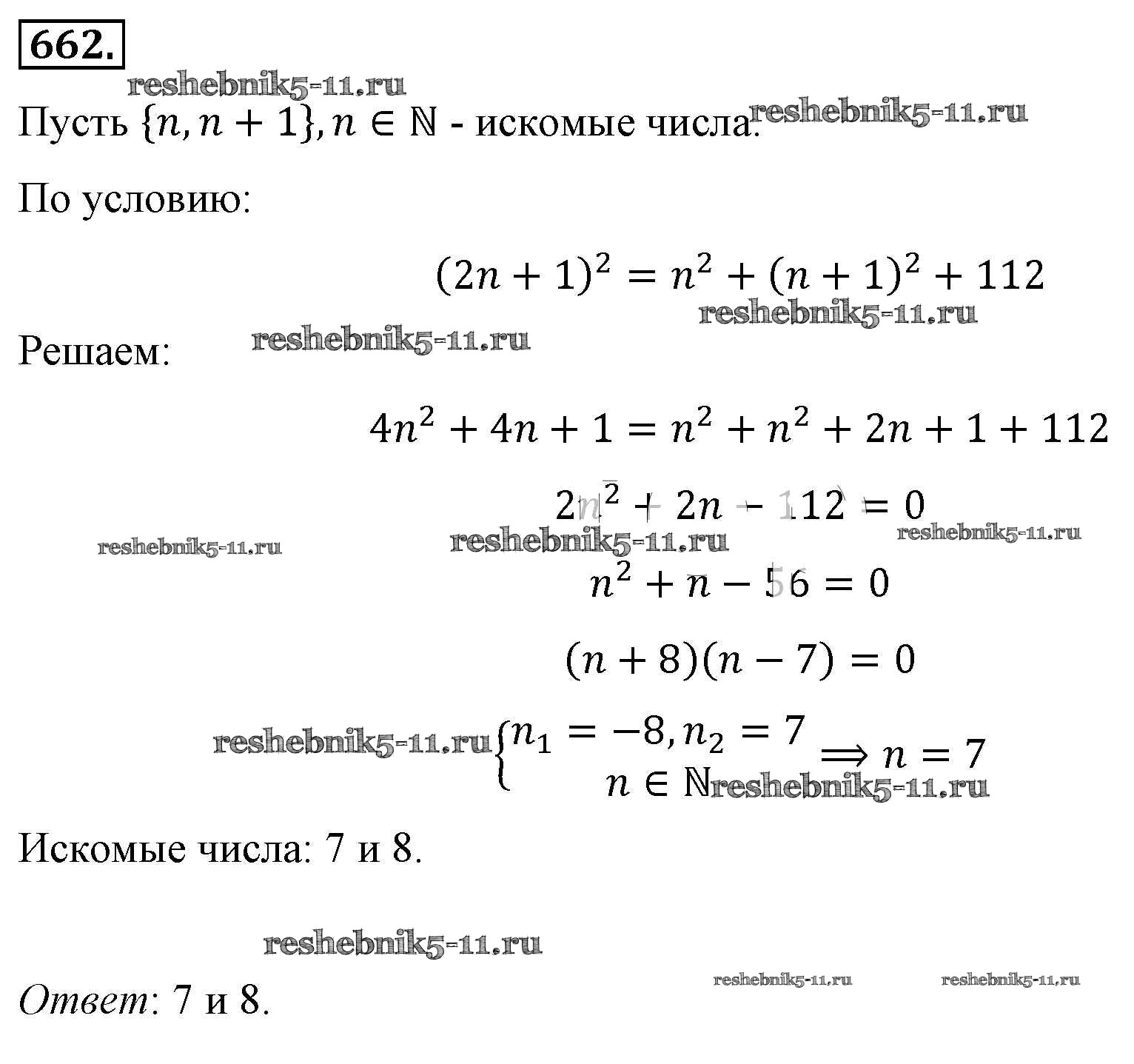 Готовая домашняя работа с ответами по Алгебре за 8 класс Макарычев, Миндюк, Нешков, Суворова Учебник Просвещение 2016 ФГОС - Упражнения 662