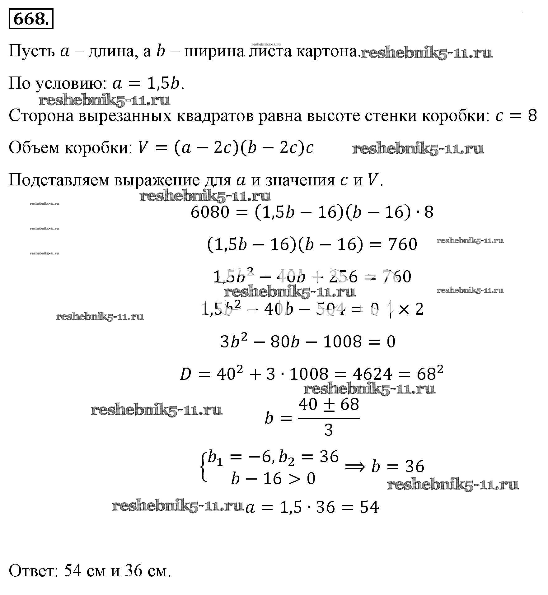 Готовая домашняя работа с ответами по Алгебре за 8 класс Макарычев, Миндюк, Нешков, Суворова Учебник Просвещение 2016 ФГОС - Упражнения 668
