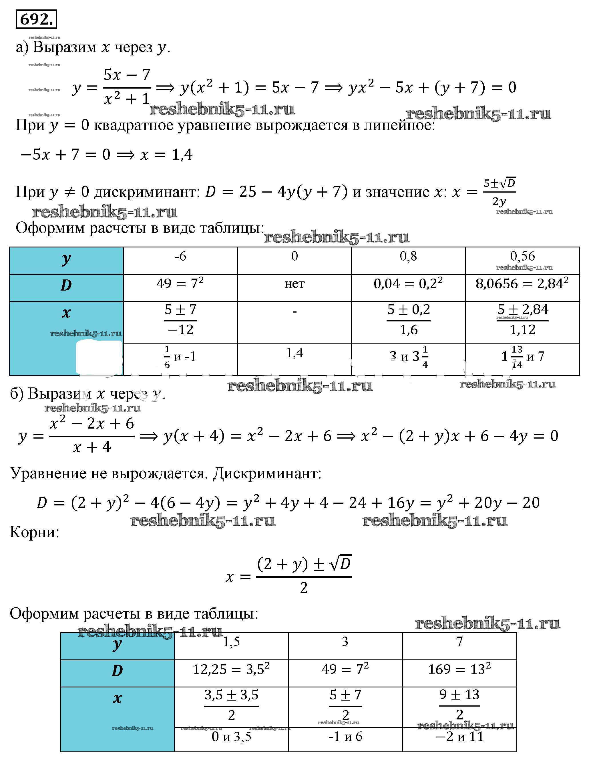 Готовая домашняя работа с ответами по Алгебре за 8 класс Макарычев, Миндюк, Нешков, Суворова Учебник Просвещение 2016 ФГОС - Упражнения 692