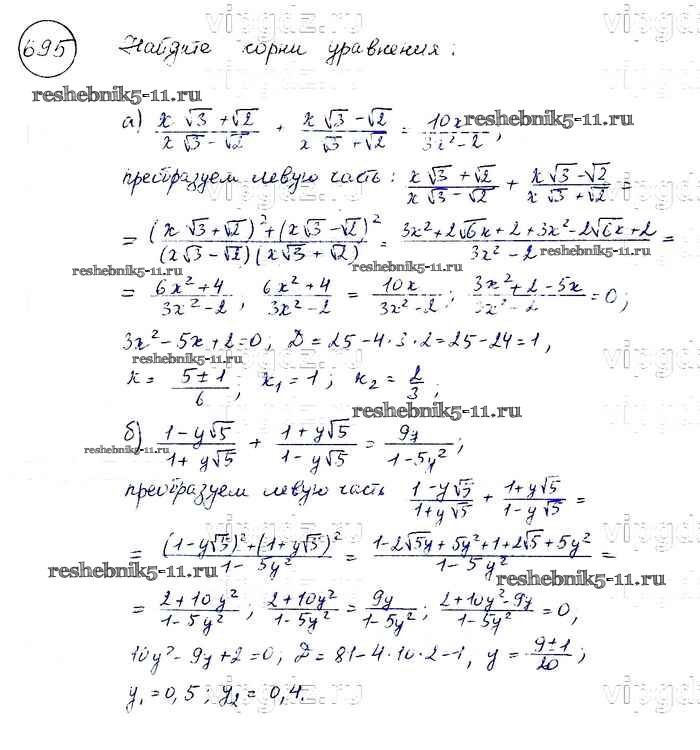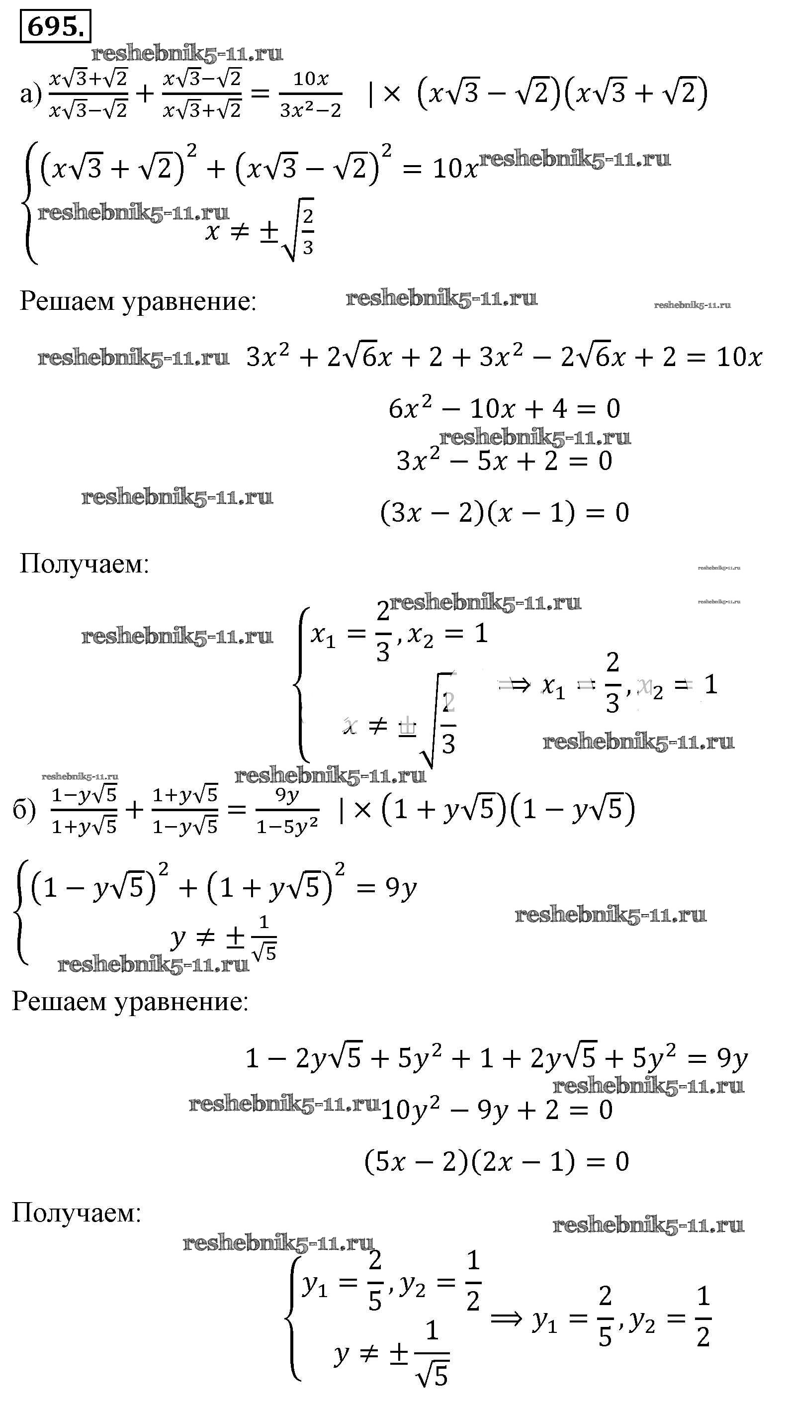 Готовая домашняя работа с ответами по Алгебре за 8 класс Макарычев, Миндюк, Нешков, Суворова Учебник Просвещение 2016 ФГОС - Упражнения 695