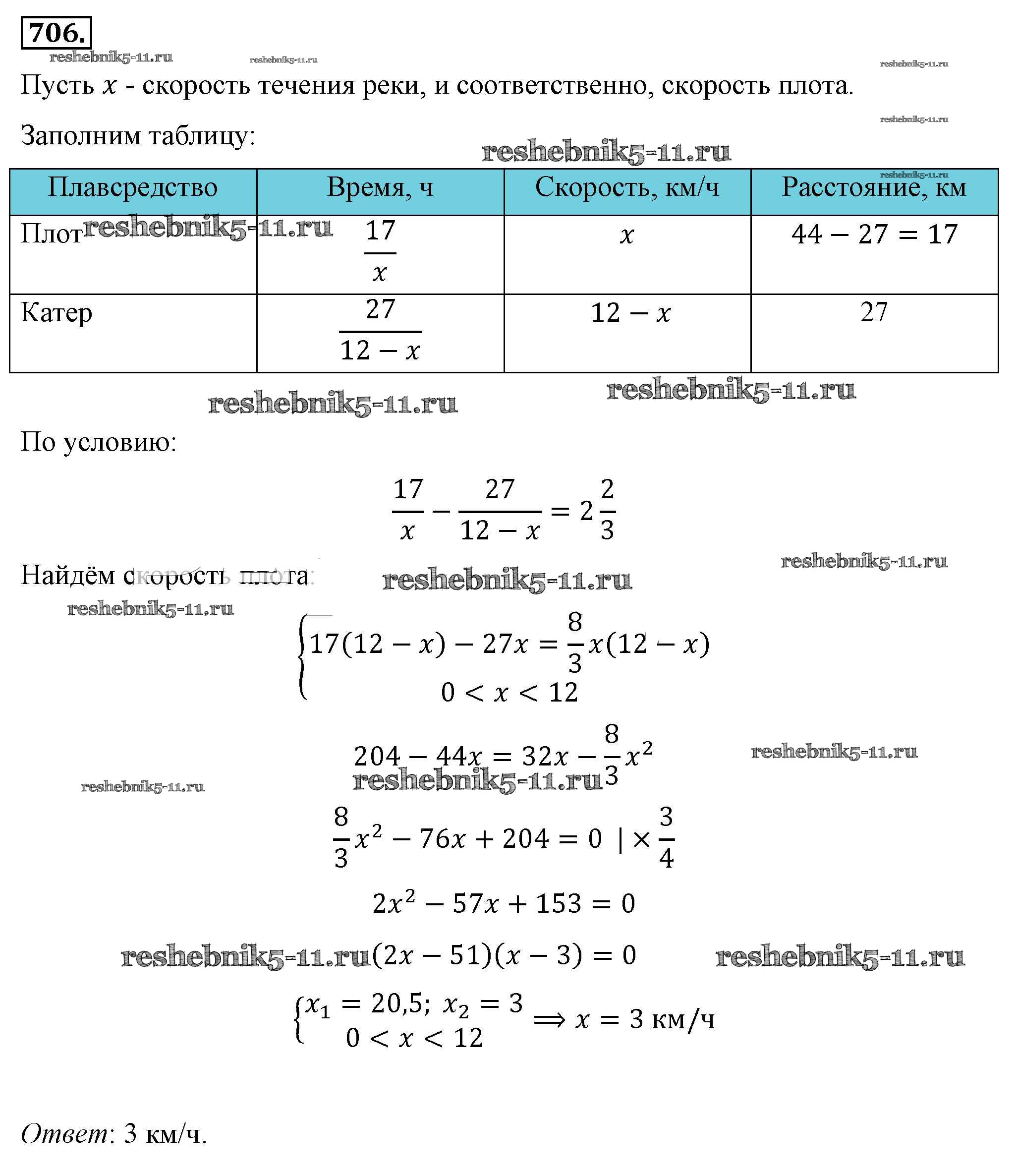 Готовая домашняя работа с ответами по Алгебре за 8 класс Макарычев, Миндюк, Нешков, Суворова Учебник Просвещение 2016 ФГОС - Упражнения 706