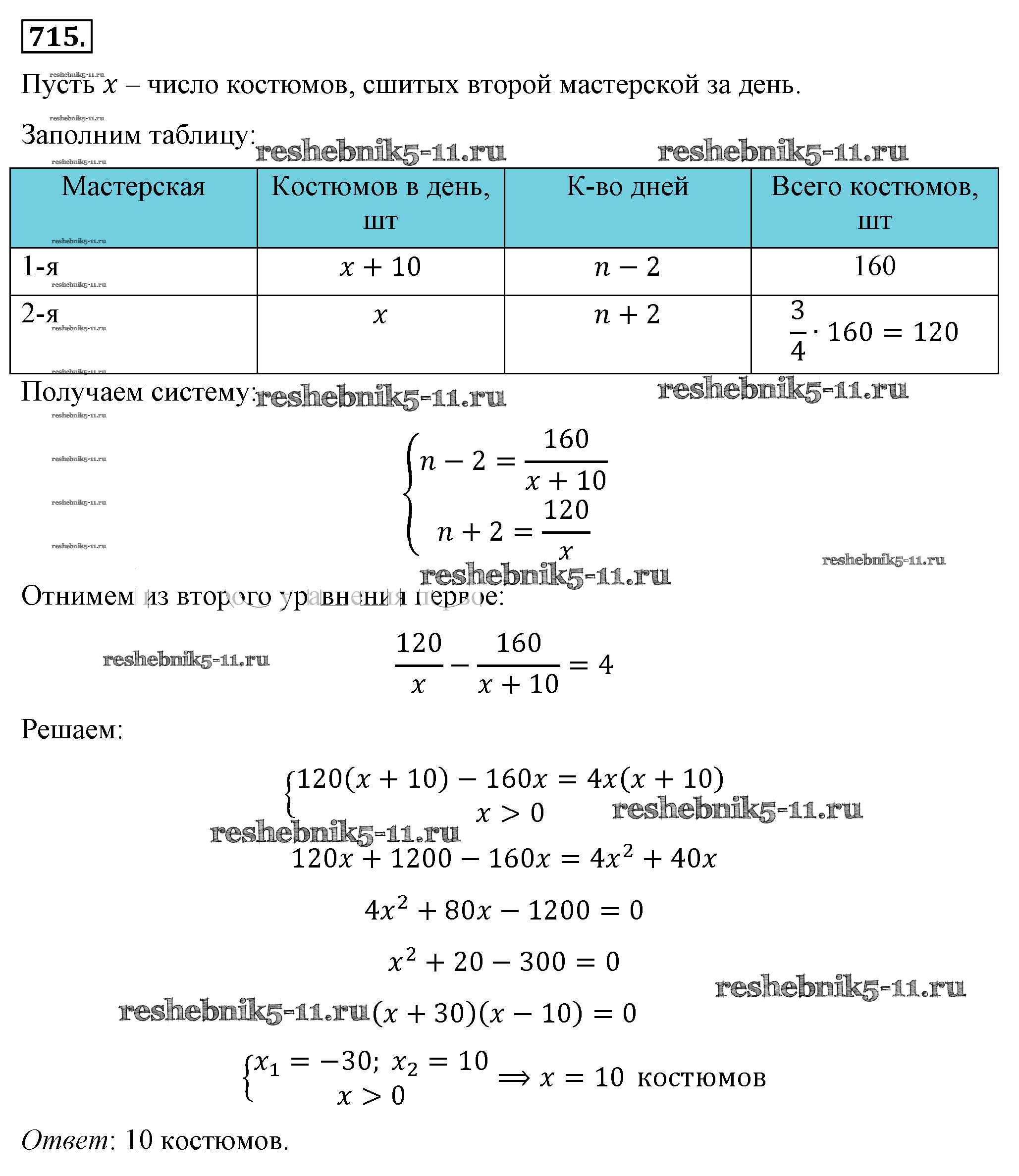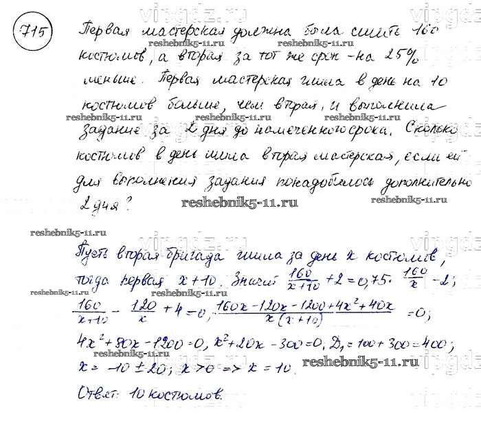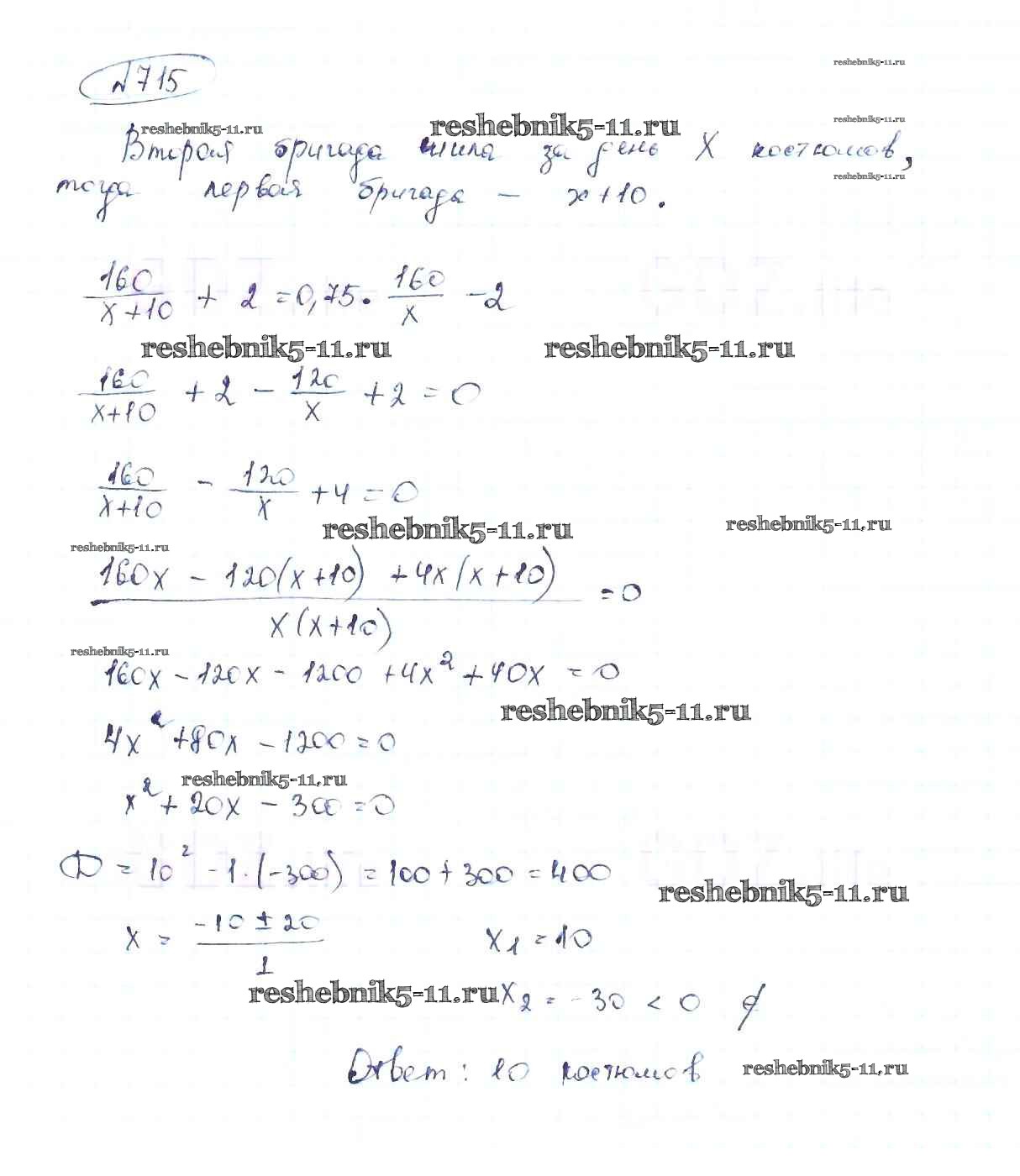 Готовая домашняя работа с ответами по Алгебре за 8 класс Макарычев, Миндюк, Нешков, Суворова Учебник Просвещение 2016 ФГОС - Упражнения 715