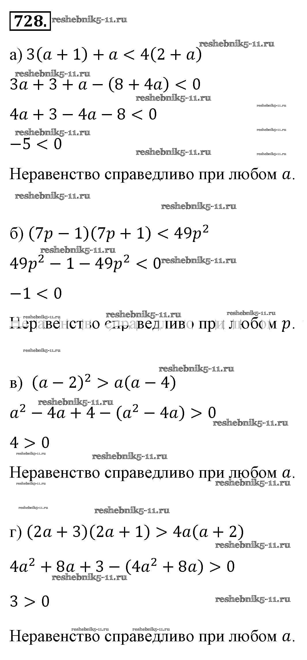 Готовая домашняя работа с ответами по Алгебре за 8 класс Макарычев, Миндюк, Нешков, Суворова Учебник Просвещение 2016 ФГОС - Упражнения 728