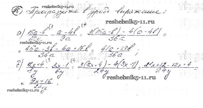 Готовая домашняя работа с ответами по Алгебре за 8 класс Макарычев, Миндюк, Нешков, Суворова Учебник Просвещение 2016 ФГОС - Упражнения 75